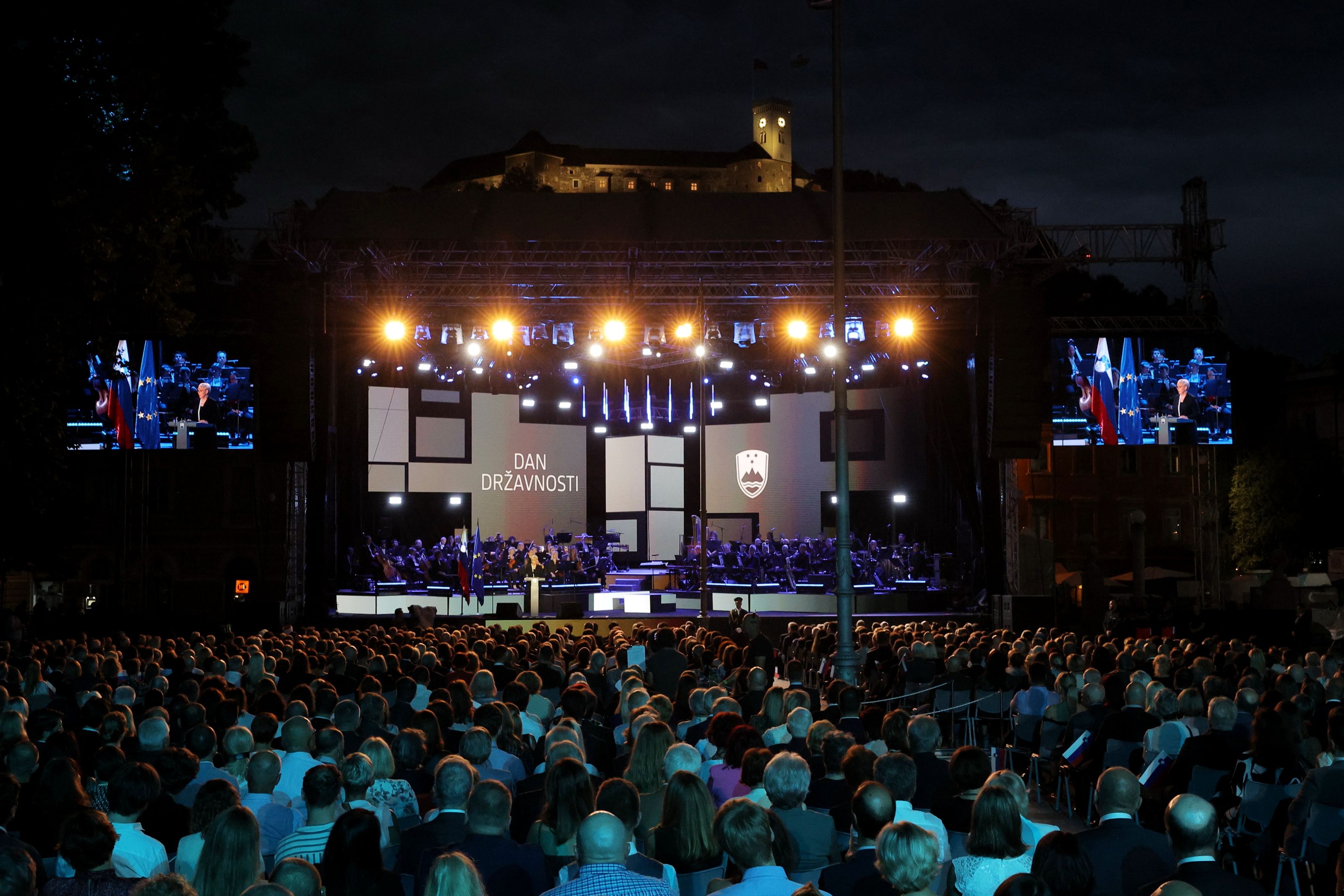 Let me return to our national anthem. It is the most beautiful in the world. Not only because it is ours, but also because it is cosmopolitan. With it, we celebrate our nation, but also the world in which we live. "God's blessing on all nations," says Prešeren, adding, "no more shall foes, but neighbours be". This is the spirit of the United Nations Charter – coexistence and collaboration, not war and weapons. This is the spirit of united Europe to which we aspire and in which we want to live. It encompasses the essence of our patriotism and efforts for prosperity. Prosperity for all. Dignity for all.