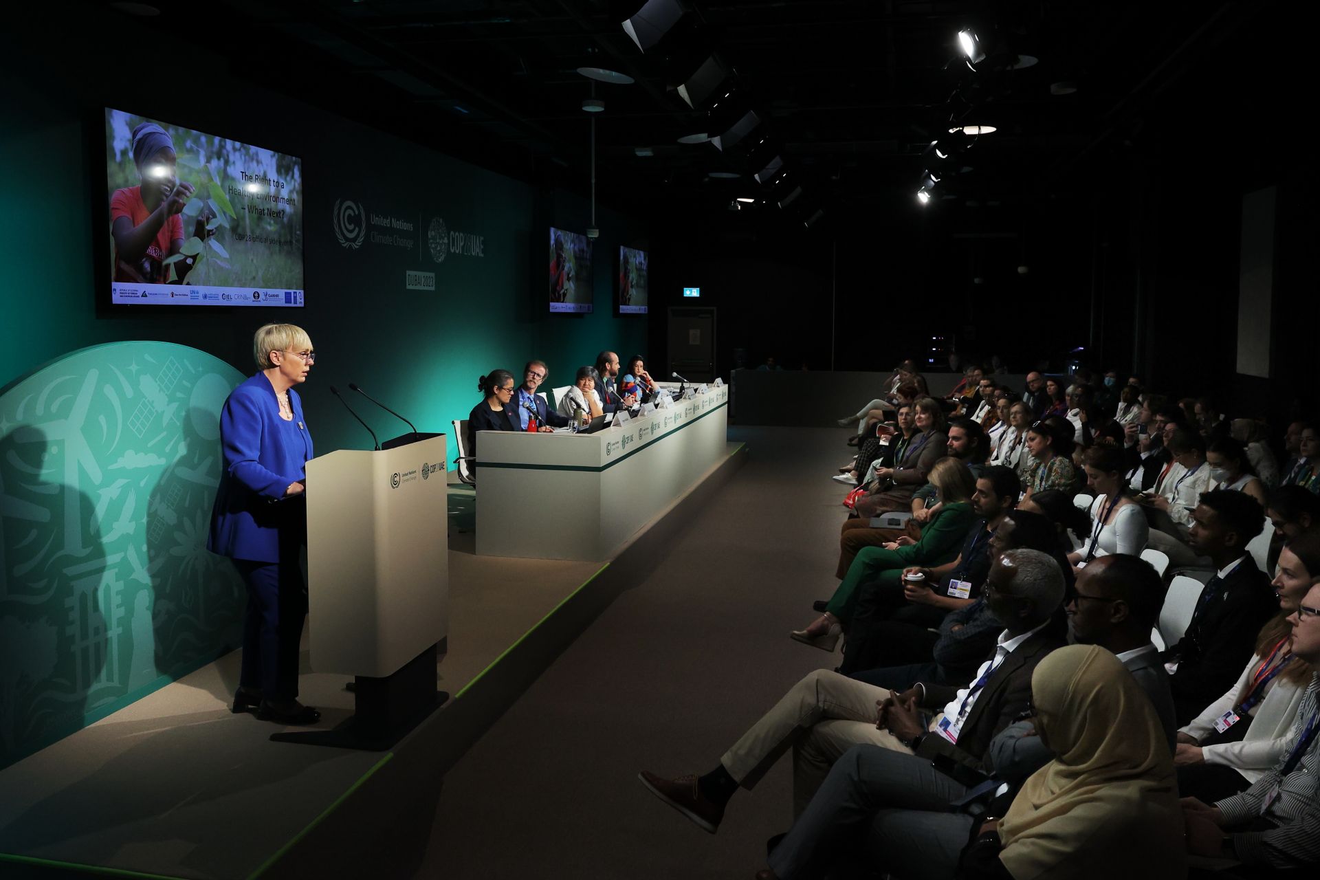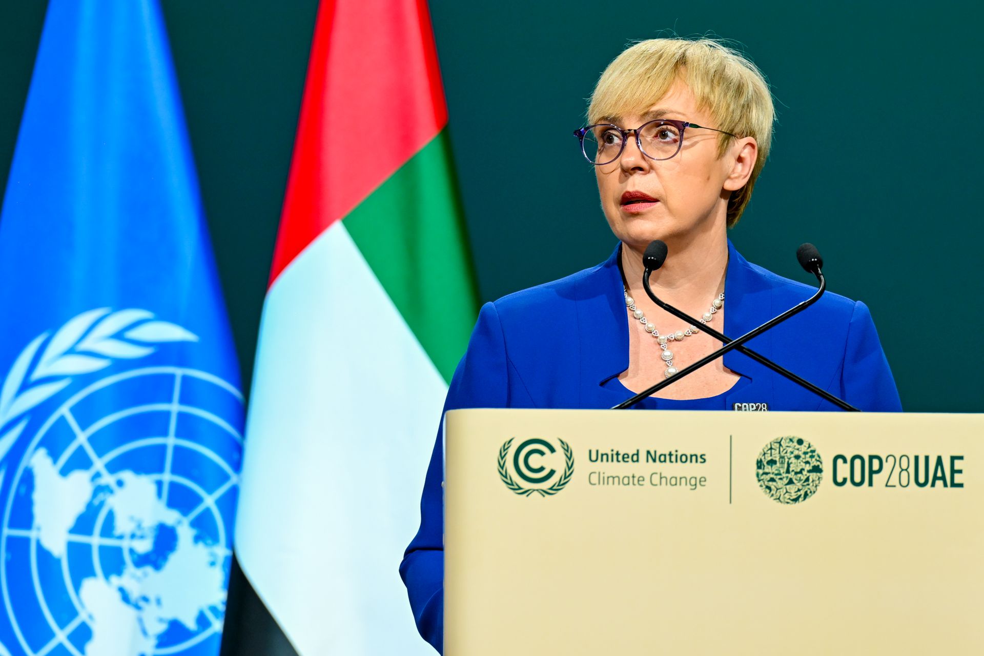 The President of the Republic of Slovenia, Nataša Pirc Musar, is leading the Slovenian delegation at this year's 28th United Nations Climate Change Conference (COP28), where world leaders met today in plenary. At the plenary session, the President of the Republic stressed the importance of respecting the commitments of the Paris Climate Agreement and the impact of military conflicts on the environment, which is a serious obstacle to mitigating the climate crisis.