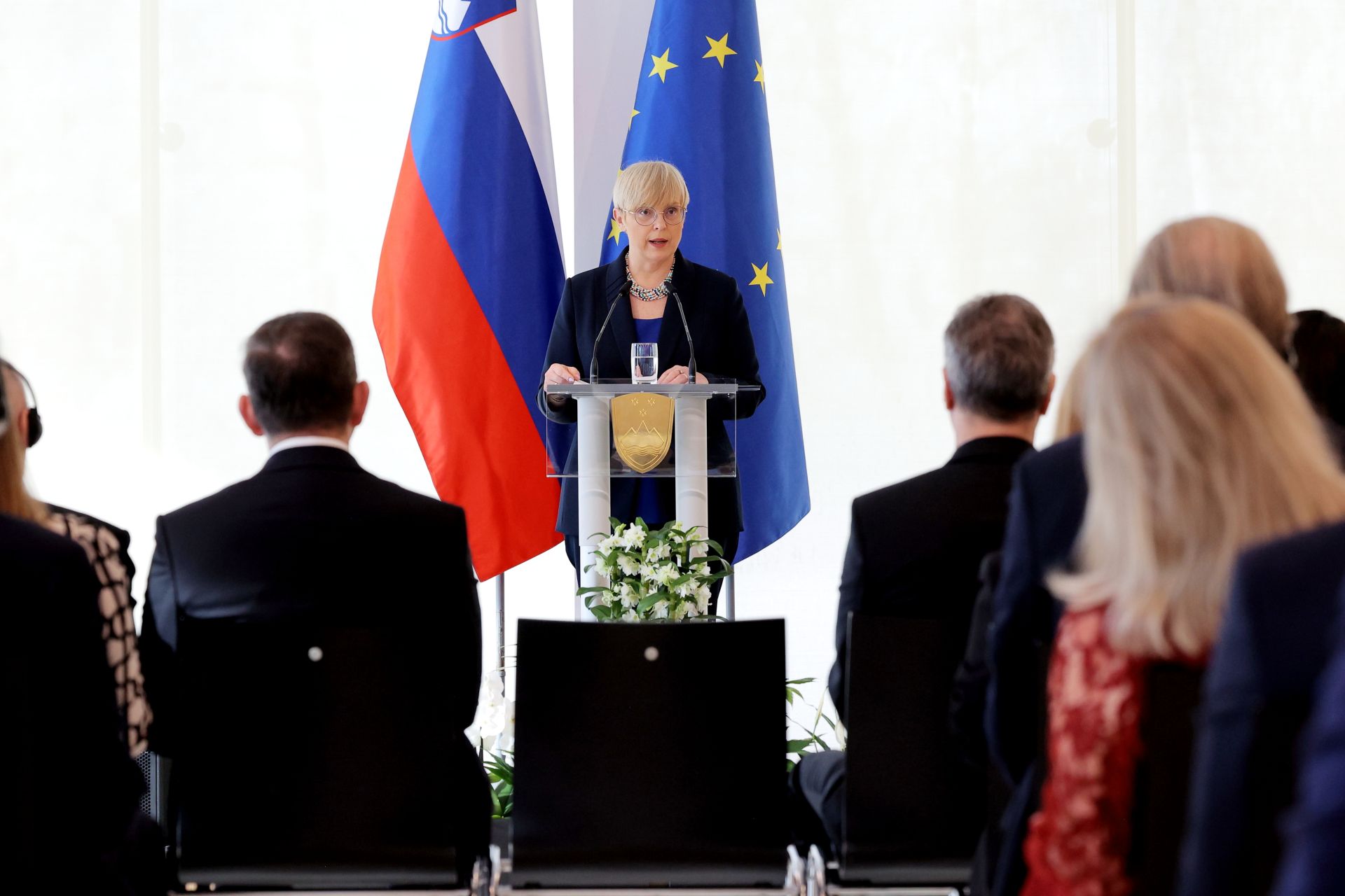 "Given the intertwined and complex nature of the crises, the world needs more cooperation between countries and strict respect for international law. It needs an effective UN to be able respond to global challenges more quickly," President Pirc Musar told the assembled diplomats and added that this year Slovenia would celebrate the 20th anniversary of its membership of the EU and NATO. "Being a member of both is something that identifies and guides us. Slovenia will strive for an even more integrated, stronger and larger European Union," the President made it clear. She also emphasised the role of the Western Balkans, whose future lies in the EU, and called for even closer cooperation between the countries in the Brdo-Brijuni process.