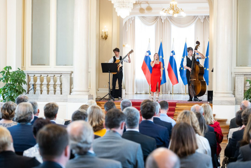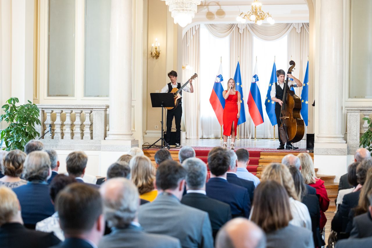 The ceremony also featured performances by young musicians Tjaša Rauter, Peter Mandelj Mejač and Jakob Istenič from the Ljubljana Music and Ballet Conservatory and dancers Eva and Katarina from the Šinšin dance studio in Kamnik.