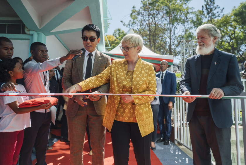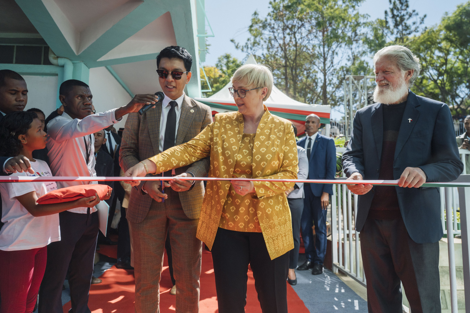 On the second day of her state visit to Madagascar, the President of the Republic of Slovenia, Nataša Pirc Musar, visited the Akamasoa community, led by missionary Pedro Opeka. Together with Father Pedro Opeka and the President of the Republic of Madagascar, she officially opened the new Père Pedro Primary School. The school, built with Slovenia's support, represents an outstanding achievement for the local community.