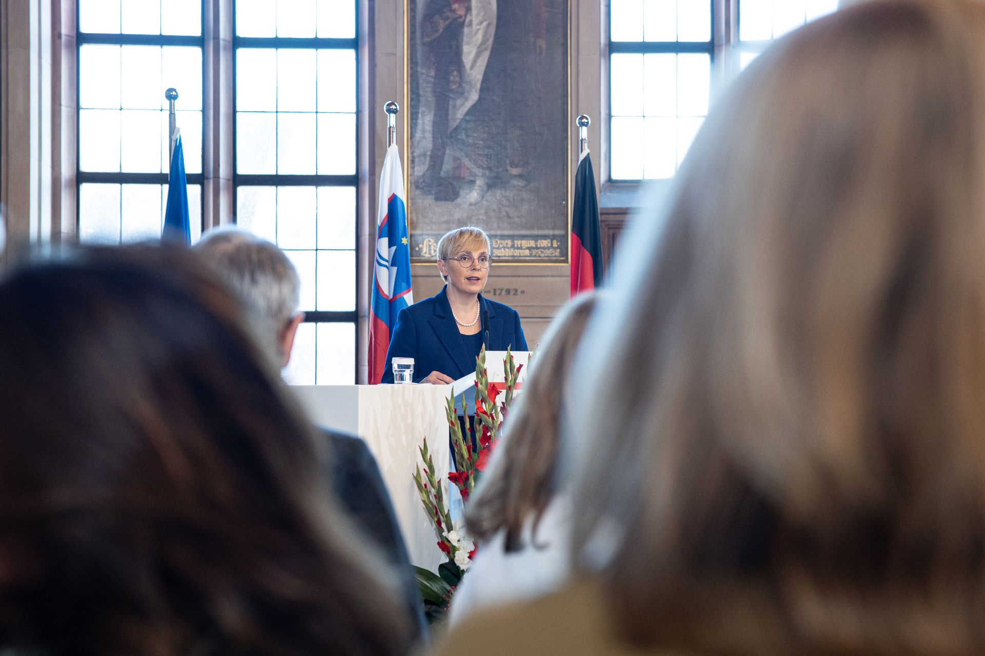 “Hungry man, reach for the book: it is a weapon,” the President recalled the words of Bertolt Brecht and concluded her speech by saying: “As a mother and as a woman, I want children, not only in Germany or Slovenia, but also in Israel and Palestine, to have this opportunity.”