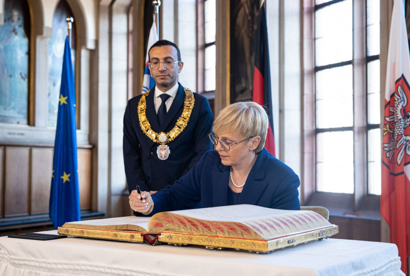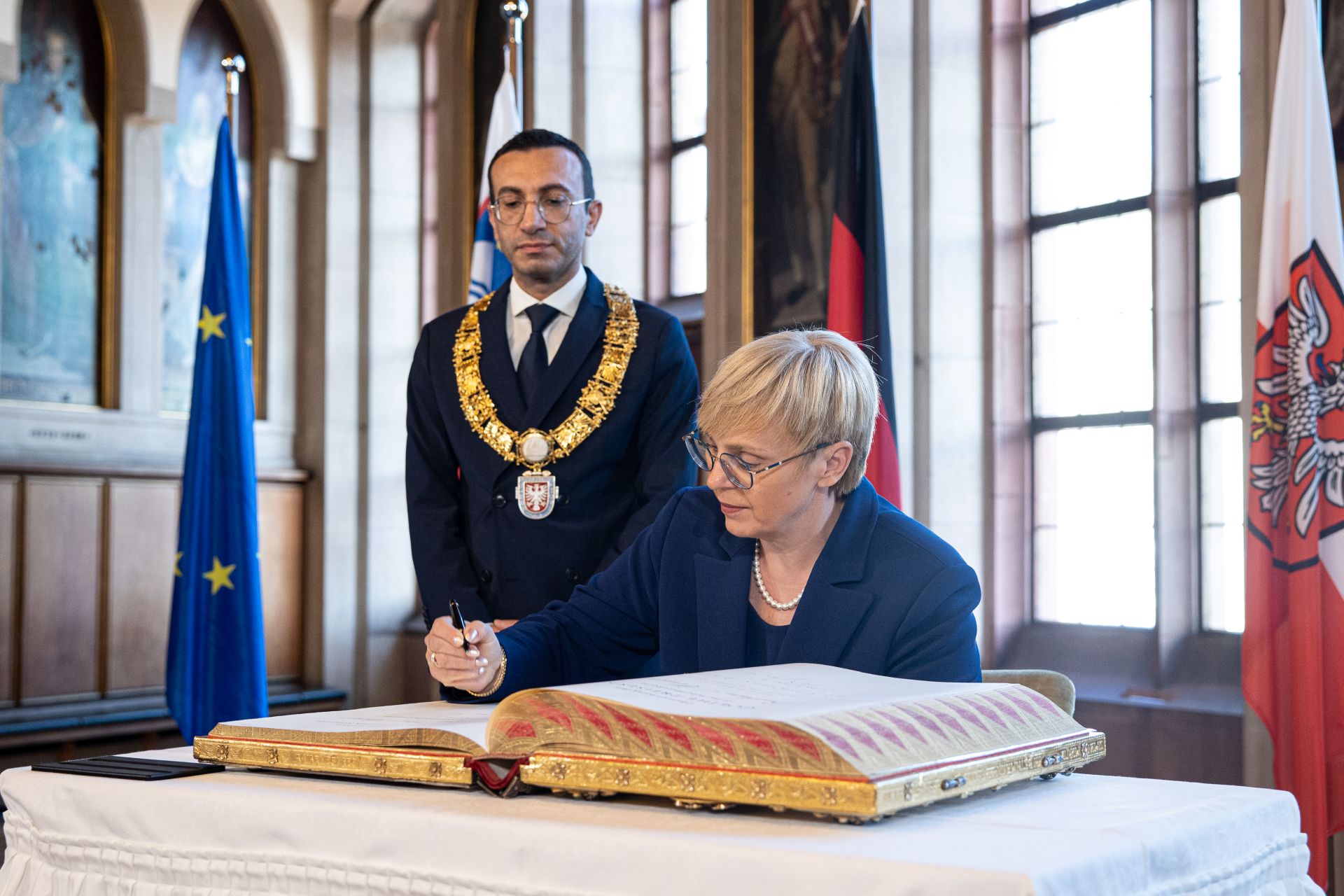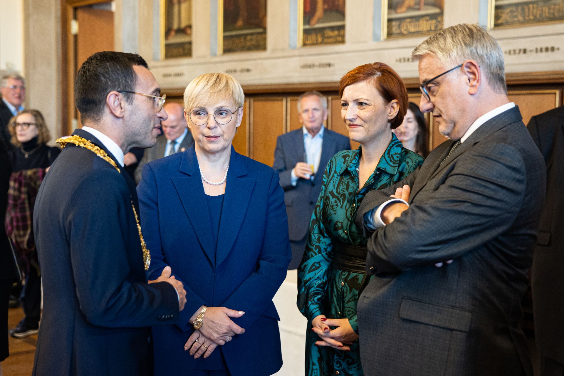She then attended the opening of the Slovenian pavilion and, in the early afternoon, together with members of the Slovenian delegation, visited the Town Hall, where Mike Josef, Lord Mayor of Frankfurt am Main, hosted a reception in honour of the opening of the Book Fair and the dignitaries of this year’s guest of honour country.
