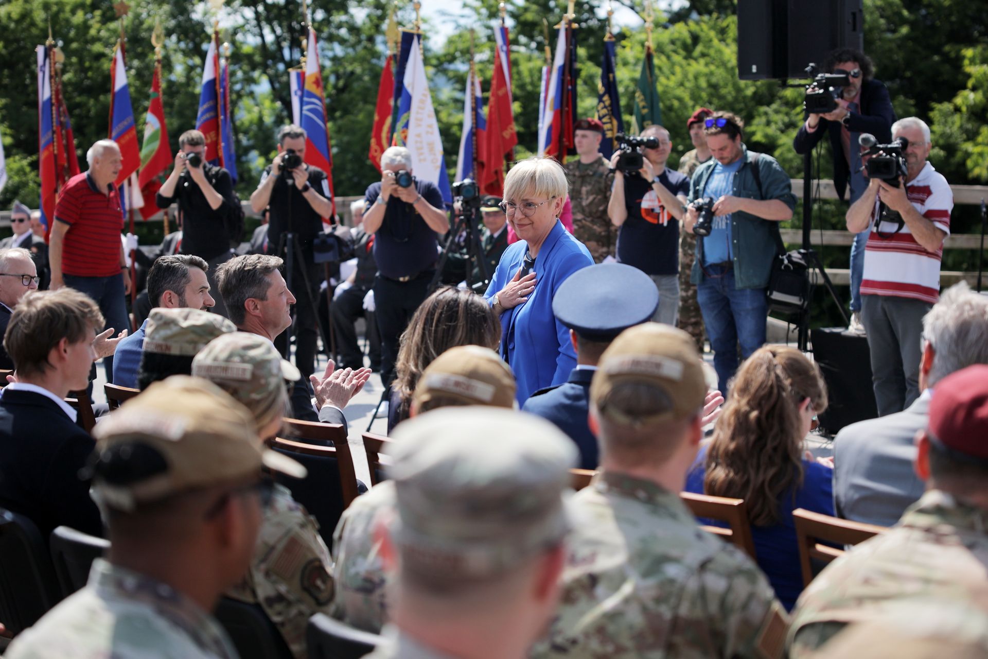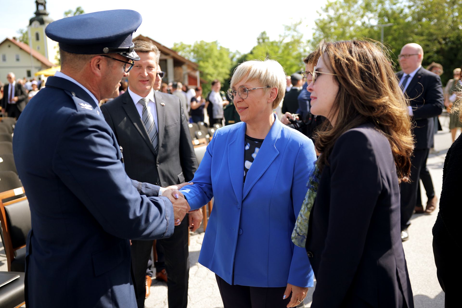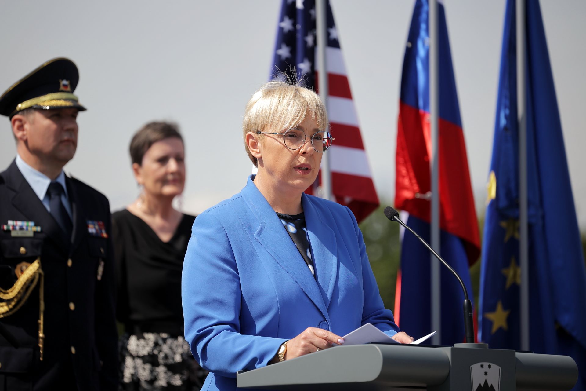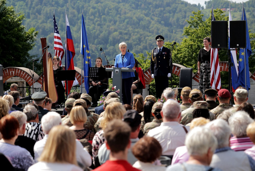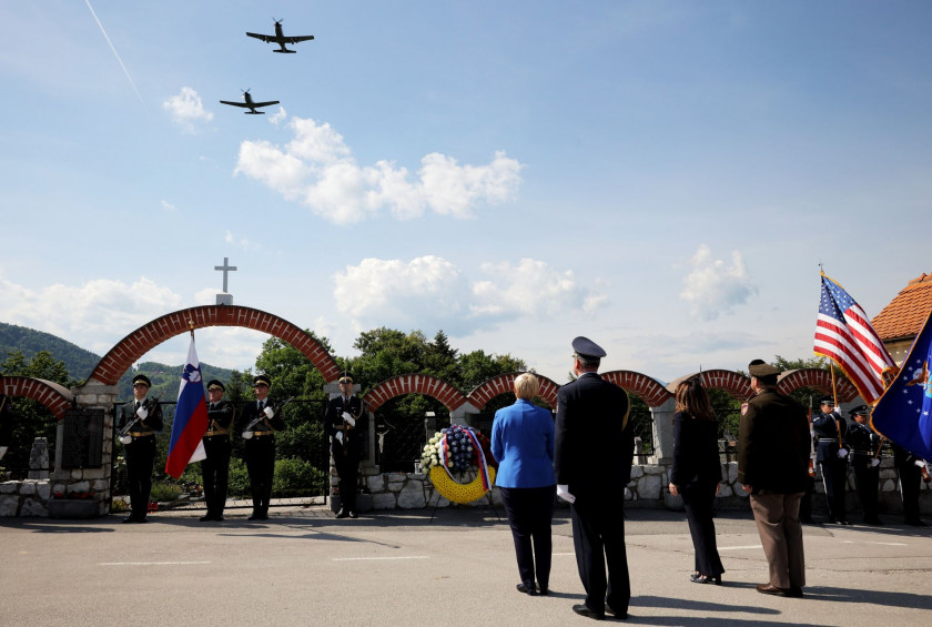 "We fought shoulder to shoulder with American and other Allied forces. Many Slovenians selflessly helped Allied soldiers and pilots, despite the danger to their own families. Their hearts and humanity dictated such acts," she said, adding that, despite the large geographical distance, Slovenia shares strong historical ties with the United States of America, and the two countries cooperate in many areas, particularly in the framework of NATO.