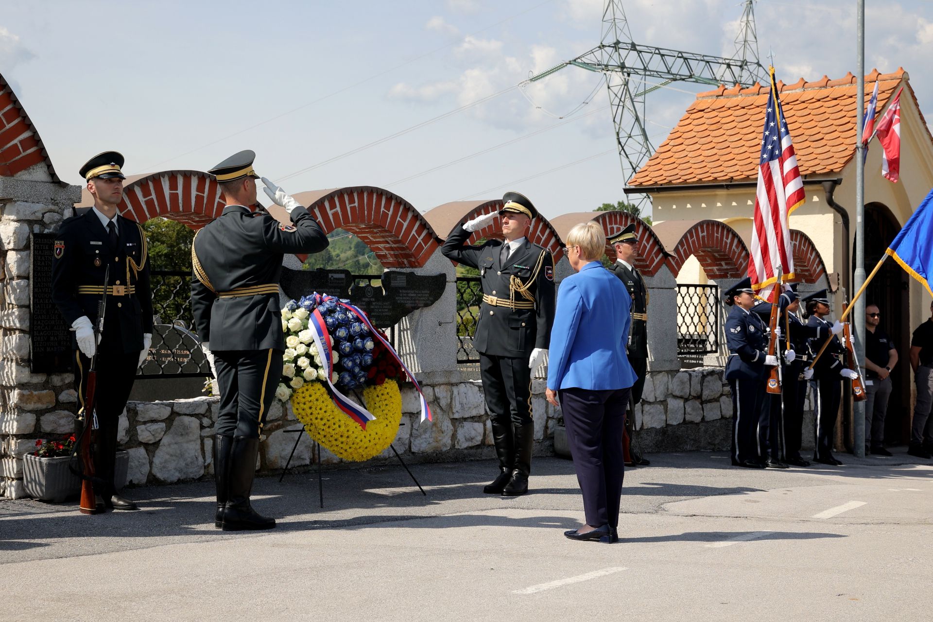 The President of the Republic of Slovenia and the Commander-in-Chief of the Slovenian Armed Forces, Nataša Pirc Musar, was the speaker of honour at the traditional Slovenian-American Friendship and Alliance Day. She laid a wreath at the memorial plaque to commemorate the fallen crew members of the allied American B-17 bomber.