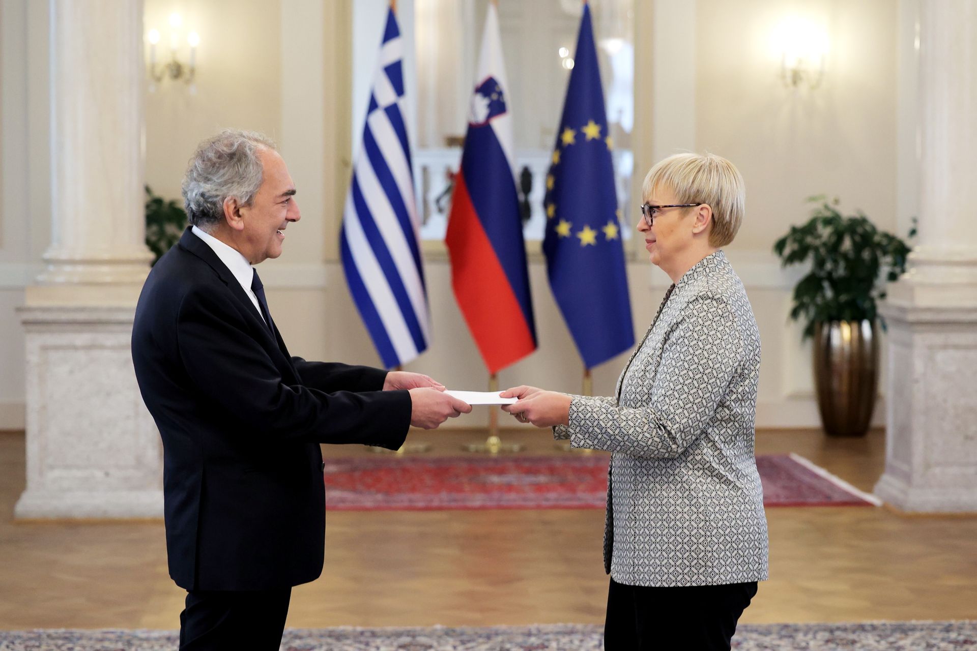 After the presentation of their credentials, ambassadors signed the guestbook of the President of the Republic of Slovenia, and had a conversation with President Pirc Musar. The introductory conversations were an opportunity to confirm Slovenia's good relations with Greece, Japan, Andorra and Sweden and to exchange ideas for their further upgrade.