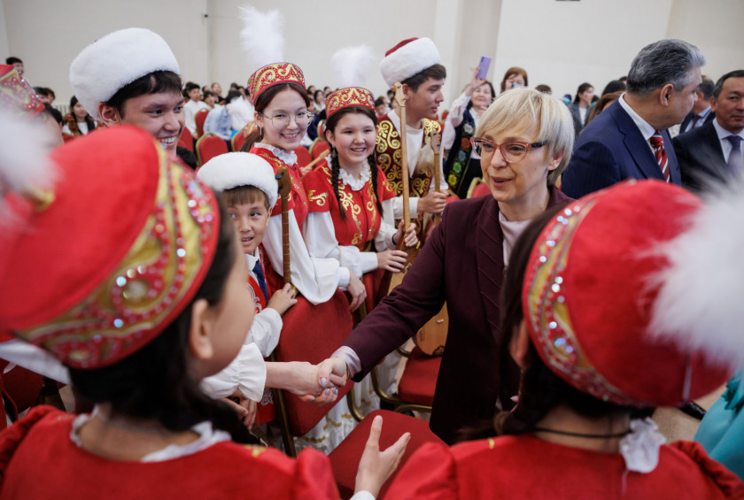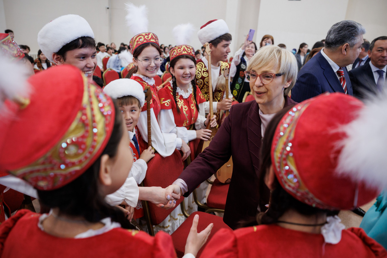 The morning programme was dedicated to young people and sustainability. The President visited the Astana Primary School Lyceum No. 89, where she opened an exhibition of Slovenian and Kazakhstani children’s artworks entitled "Young Bees for Peace". The exhibition is part of an educational and cultural project in cooperation with the Domžale Primary School, developed with the support of President Pirc Musar. Through the mediums of painting and literature, the pupils of both countries explored the importance of bees for nature and peace, and the responsibility of young people in shaping a better future. The initiative was also supported by the Slovenian Beekeepers’ Association, which donated honey for Kazakhstani children.