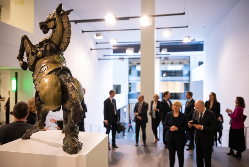 President Pirc Musar also said a few words about the statue of a Lipizzaner horse by Janez Boljka, which is symbolically important not only because it is a magnificent work of art by a Slovenian artist, but also because the same statue will adorn both the Presidential Palace in Ljubljana and one of the main staircases at the seat of the Court of Justice of the European Union. "When we discussed earlier this year what would be an additional work of art of special significance to adorn the Court of Justice, a collaboration between the National Gallery, the Office of the President and the Court of Justice resulted in the proposal that a statue of a Lipizzaner similar to the one gracing the pedestal of the central staircase at the Presidential Palace in Ljubljana would be a fitting addition to the Court of Justice," she explained. Only four casts were made, however, and the one in the Presidential Palace is the only one in public hands. After some research, the President's husband, Dr Aleš Musar, found another of the casts in one of Slovenia's largest private collections, owned by the NLB bank. On his initiative, NLB lent the statue on a long-term basis to the National Gallery, which in turn lent it to the Court of Justice in Luxembourg.