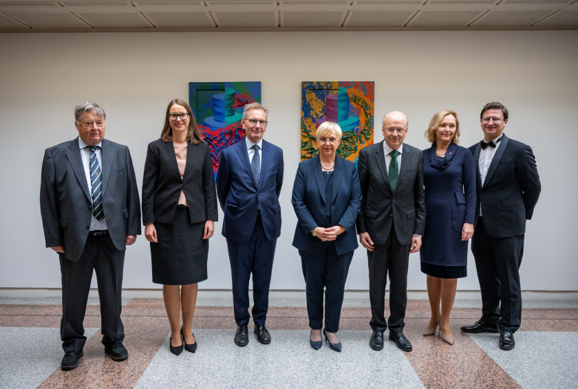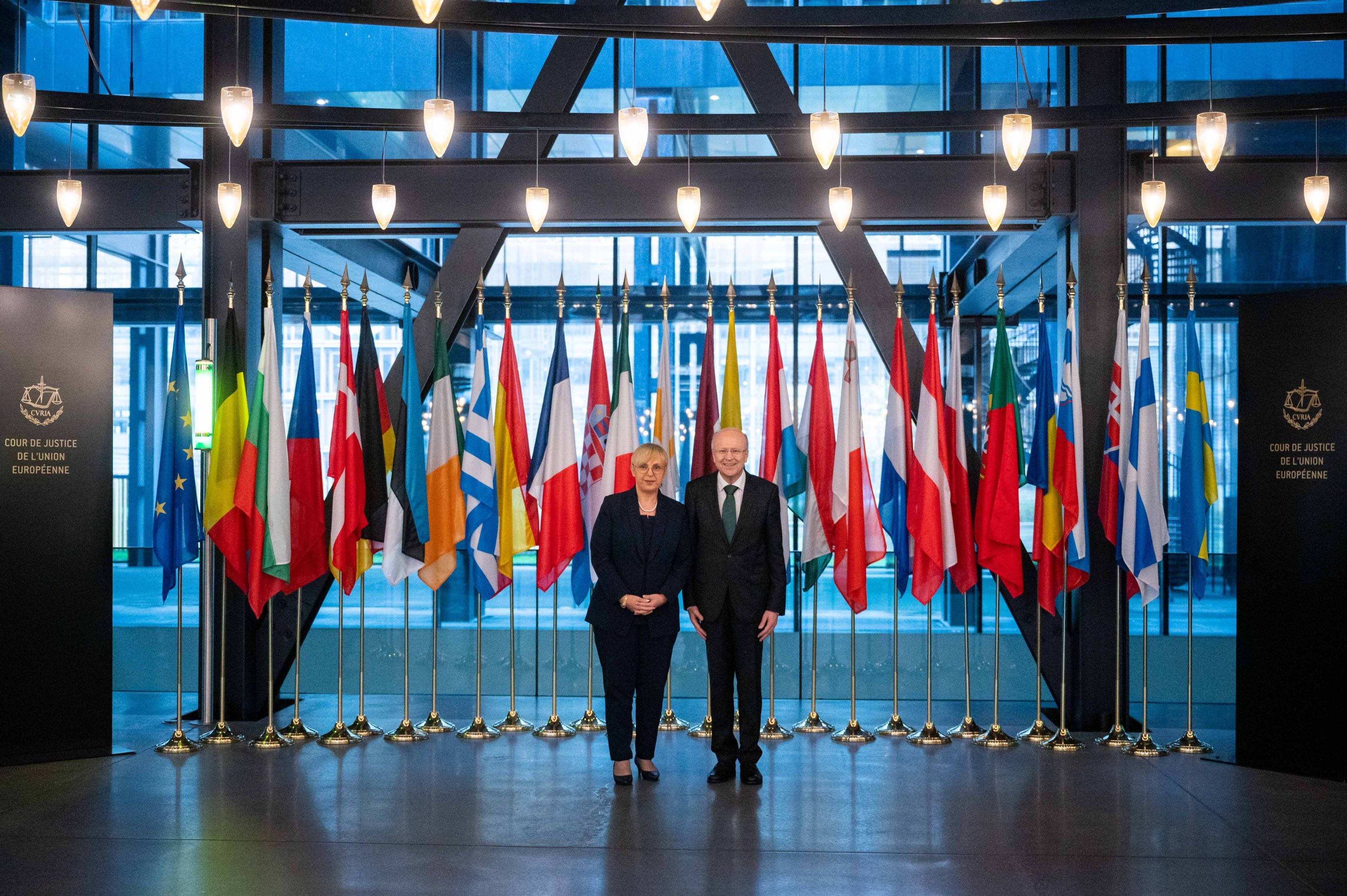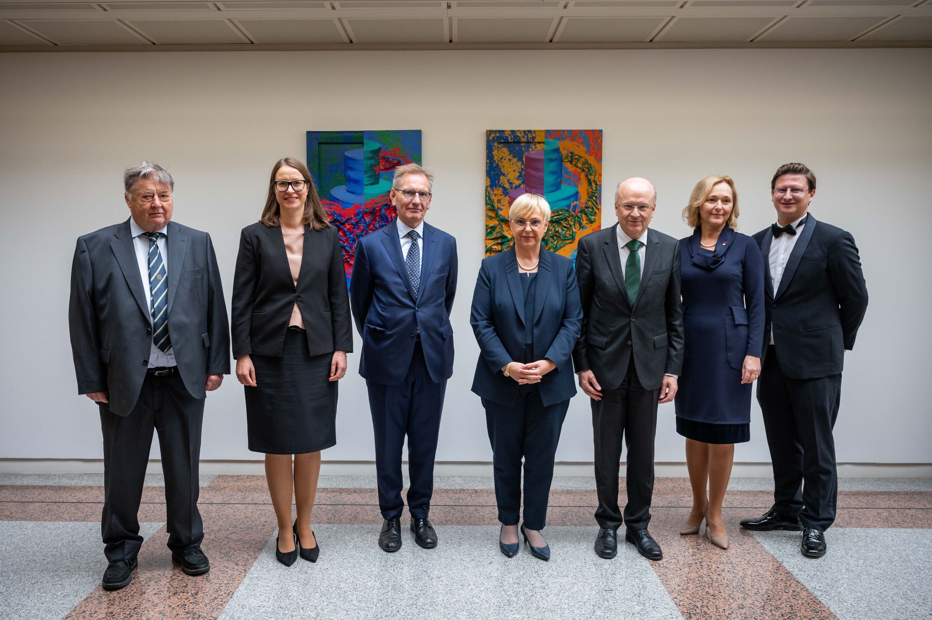Today, in a formal ceremony, the Slovenian President presented all three works of art to the Court of Justice of the European Union, stressing that she was honoured to be able to celebrate two things that were close to her heart – the rule of law and the arts – at the same time. "Talking about the rule of law and the arts is very important in these difficult times," said the President. She emphasised that the freedoms we enjoy today cannot be taken for granted and must therefore be protected, adding that we must defend the principles and fundamental values on which the EU is founded. "It is our responsibility to safeguard them, particularly by upholding the rule of law, the supremacy of EU law and the authority of the Court," she added.