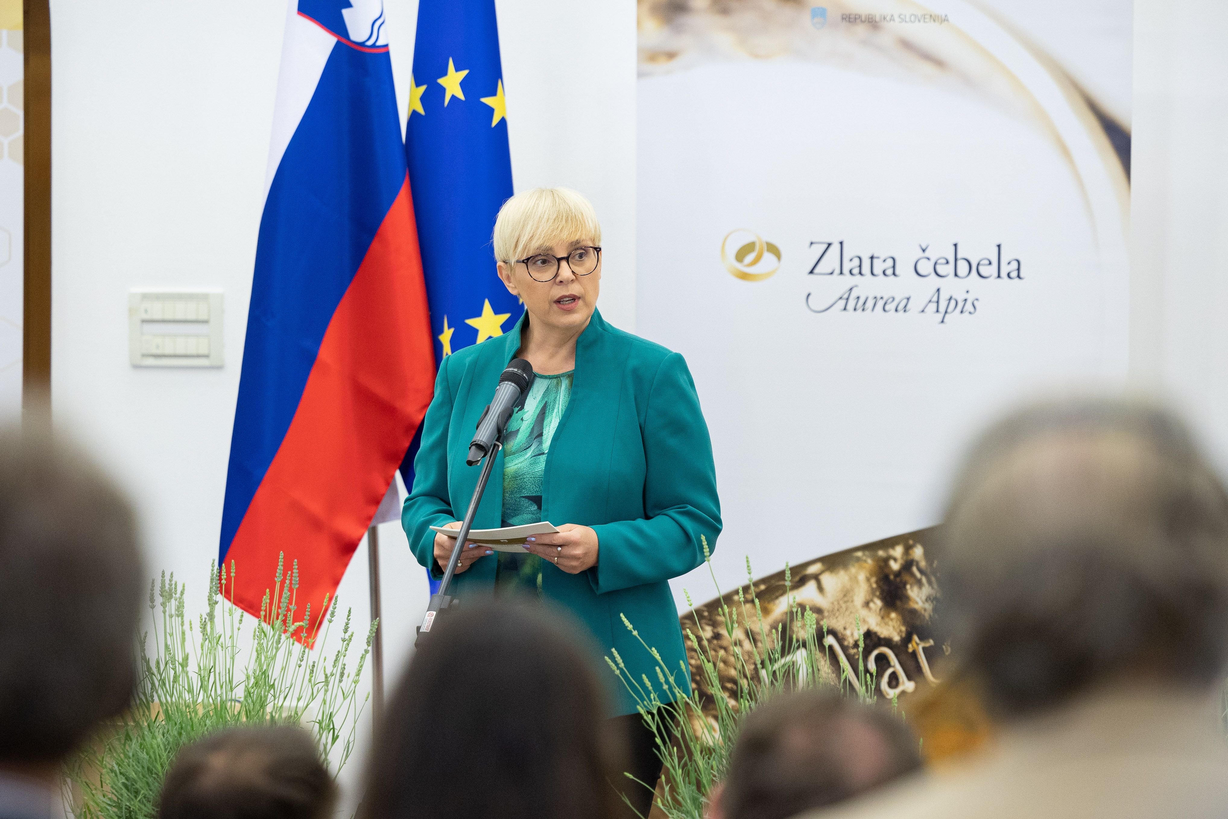 The President of the Republic of Slovenia, Nataša Pirc Musar, attended the World Bee Day ceremony and the award ceremony of the Golden Bee Award, the highest national award in the field of bee protection, and the recognition of the role of bees and other pollinators in ensuring food security, sustainable agriculture, nature conservation, biodiversity and cultural heritage.