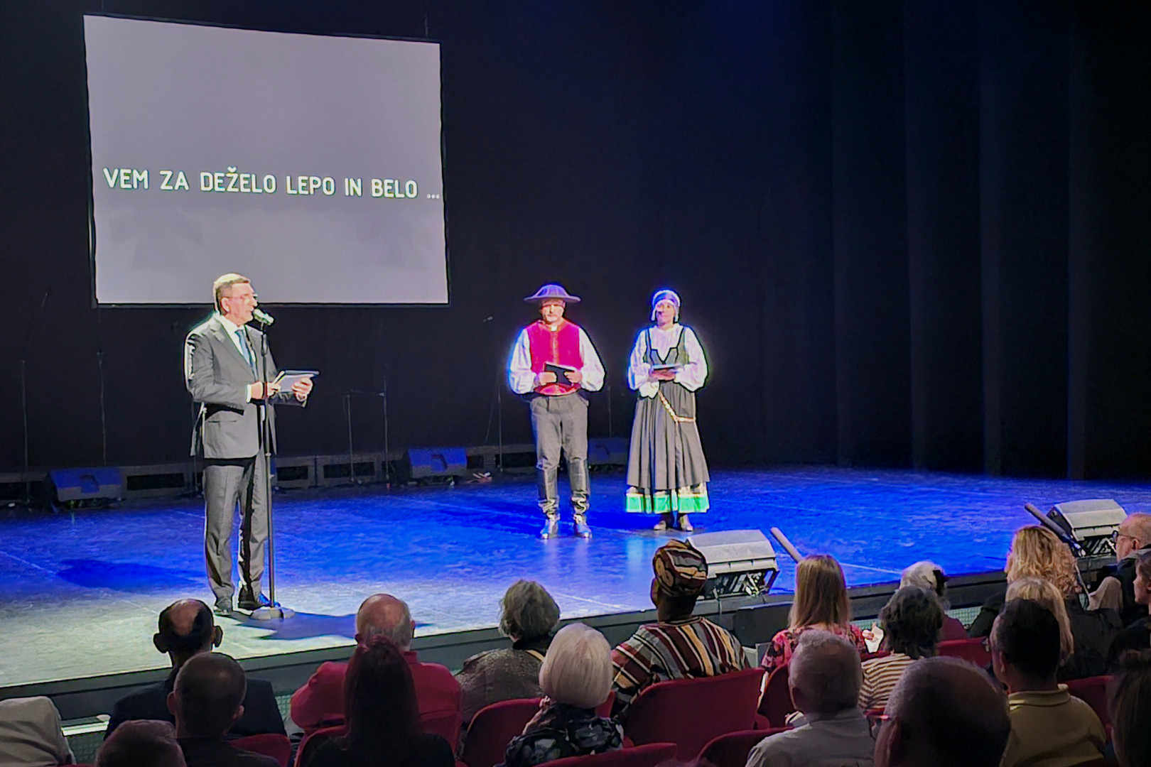 At the invitation of the Union of Slovene Folklore Groups, the husband of the President of the Republic, Dr. Aleš Musar, attended a performance with the title »I Know About the Beautiful White Country...«, dedicated to the memory of Dr. Bruno Ravnikar.