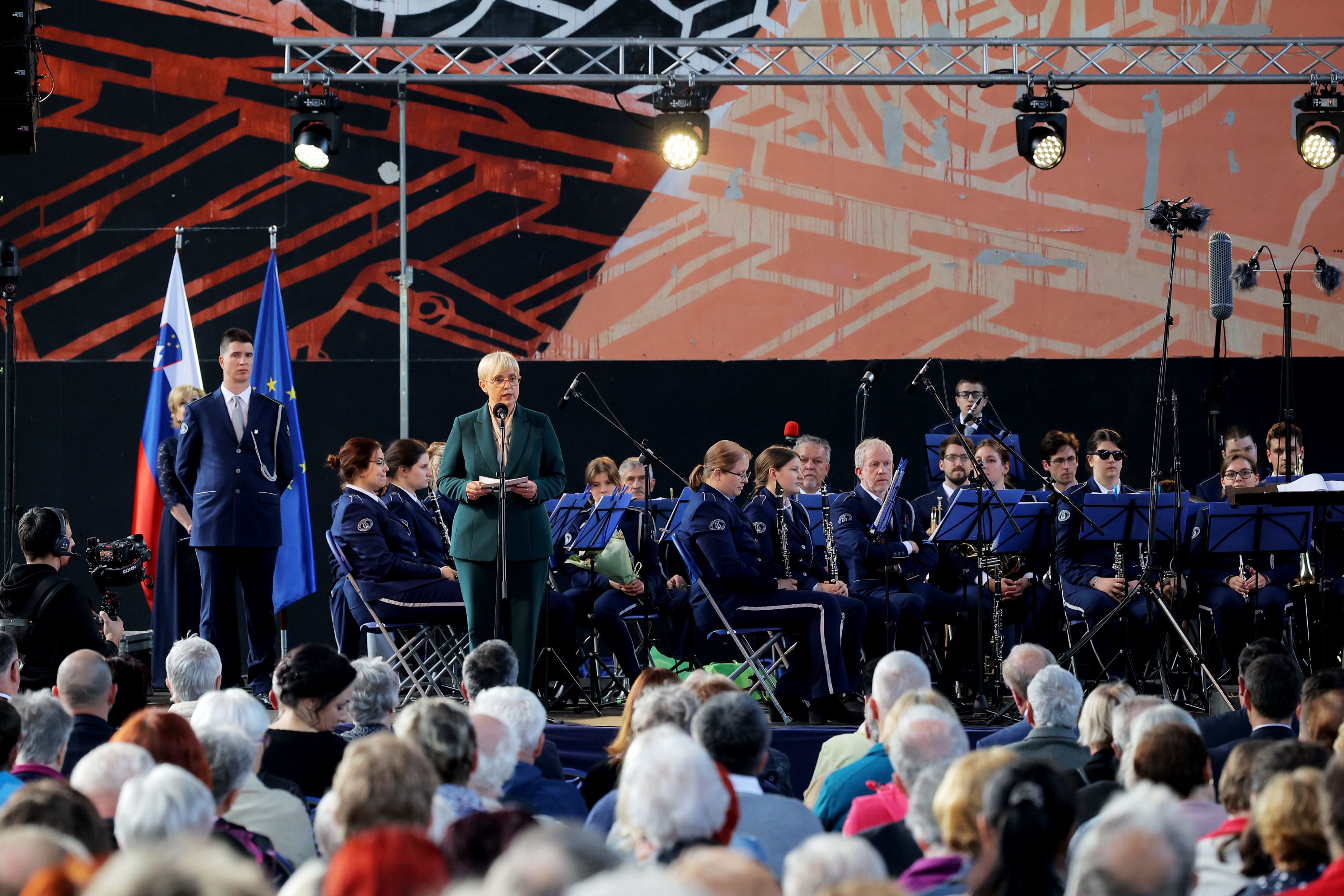 Na današnji slovesnosti je predsednica republike povedala, da so tudi sto petdeset let po začetkih tega orkestra melodije enako žive in vznesene kot so bile doslej. "Vsi čutimo, da ste z nami zato, ker imate radi glasbo in ker radi razveseljujete ljudi. In da ste z nami zato, ker imamo tudi mi, vaše občinstvo, radi glasbo in vas, ker nas razveseljujete z njo skozi življenje. To pomeni le eno: obstajamo drug zaradi drugega in živimo drug z drugim zaradi ljubezni do glasbe. V vas se zrcali občinstvo, ki vas sprejemamo kot del svoje identitete, dediščine, sedanjosti in tudi prihodnosti."