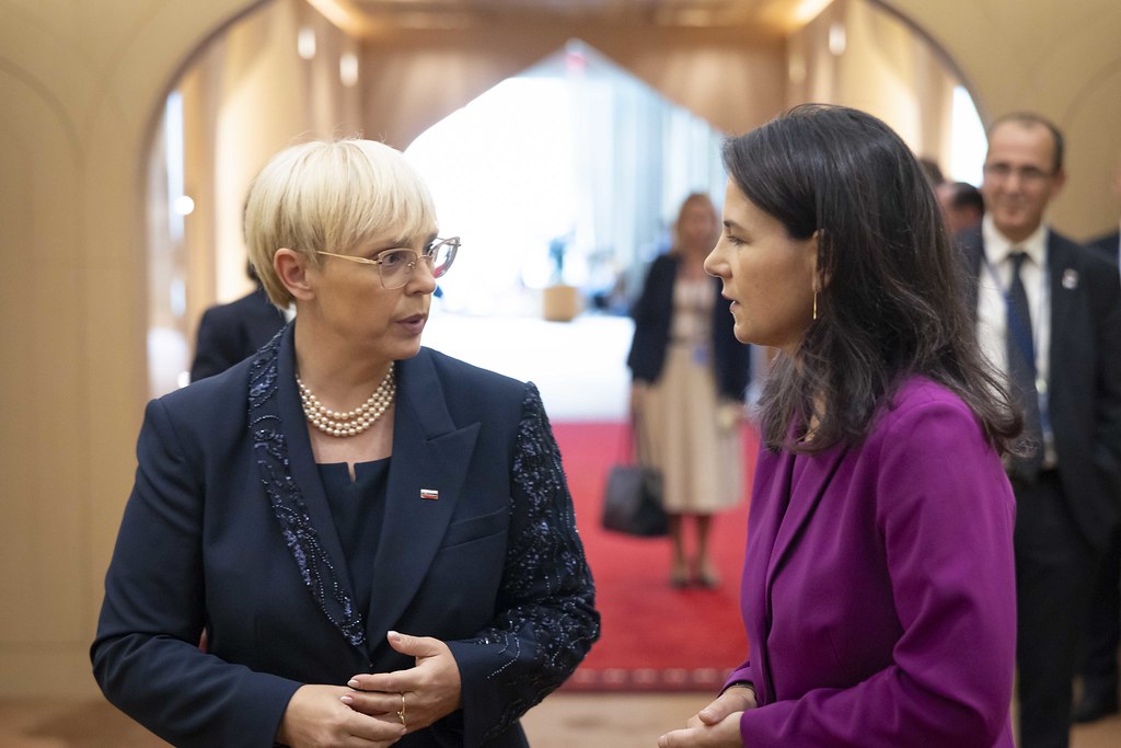 Predsednica se je srečala tudi s predsednico Generalne skupščine Annaleno Baerbock in ji čestitala za izvolitev na to pomembno funkcijo. V pogovoru sta izmenjali poglede na prioritete zasedanja Generalne skupščine in se zavzeli za učinkovitejšo OZN. Predsednica je poudarila, da Slovenija v celoti podpira predloge glede reforme OZN, ustreznega financiranja in implementacije Pakta za prihodnost. Sogovornici sta se strinjali tudi, da je krepitev položaja žensk na vseh ravneh, še posebej v mednarodni diplomaciji, ključna za zagotavljanje bolj stabilne in pravične prihodnosti.