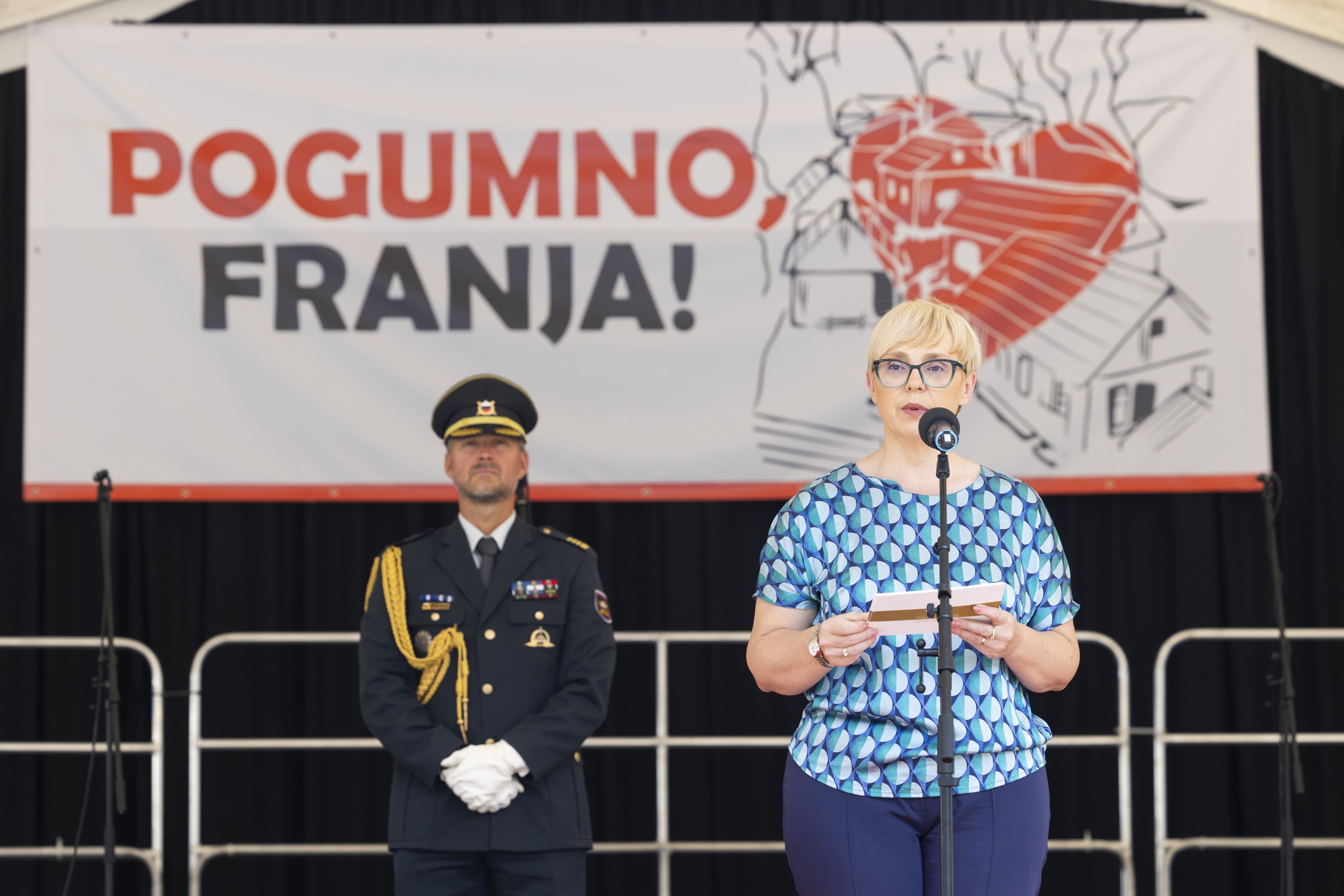 "Današnja slovesnost je prežeta s spomini, simboliko, ponosom in upanjem," je slavnostni govor začela predsednica republike in se ob tem spomnila svojega prvega obiska bolnice Franje, ki je po njenih besedah v njej vzbudil veliko občudovanje in pustil trajen pečat. "Neprecenljivost in brezčasnost tega spomenika doživljamo neposredno, vsakič znova, med lesenimi barakami, stisnjenimi pod skalnim pobočjem. Tam lahko podoživimo pristnost in bistvo temeljnih civilizacijskih vrednot in izjemnih človeških dejanj."