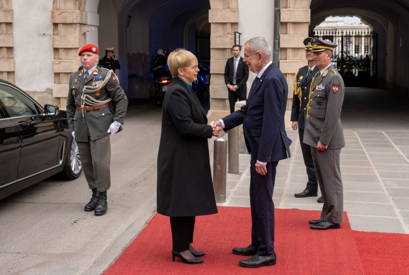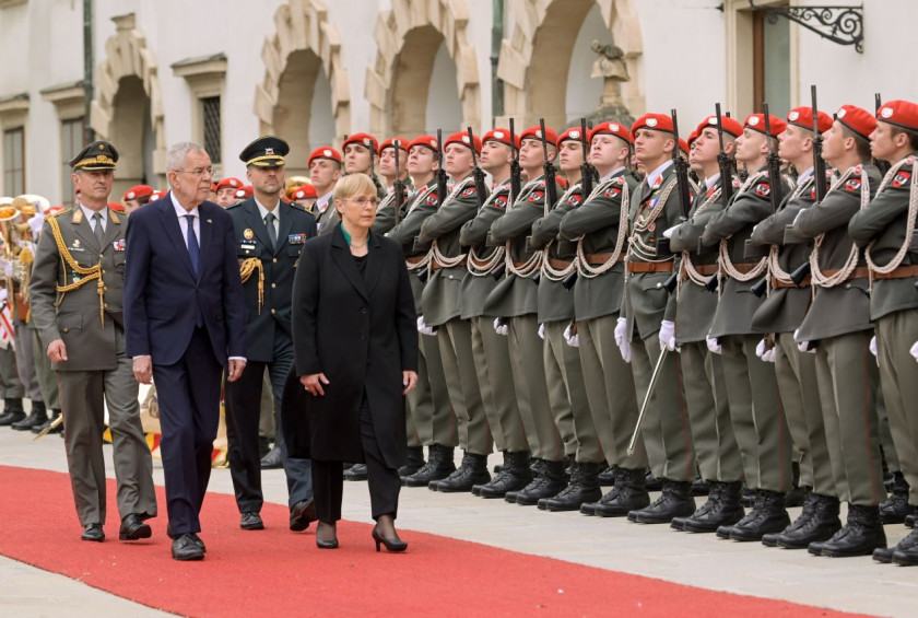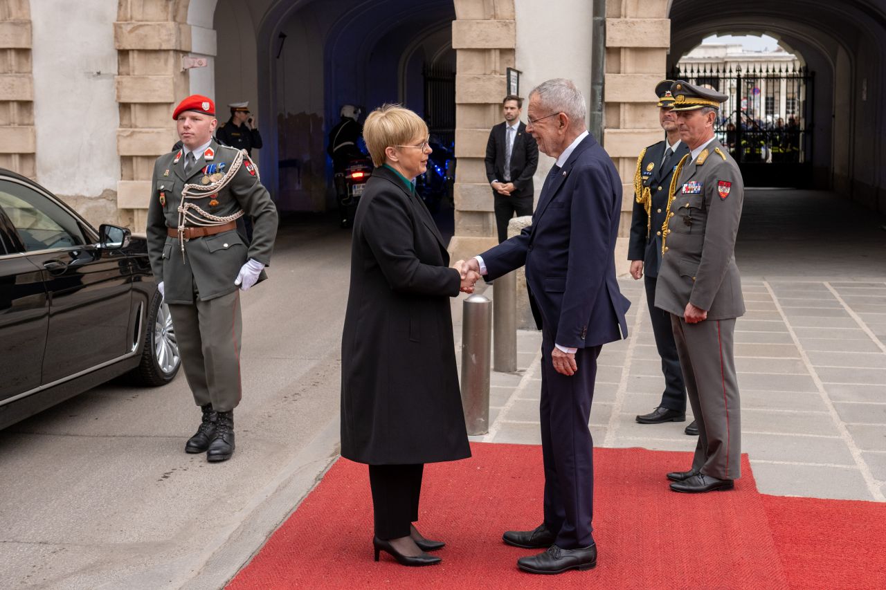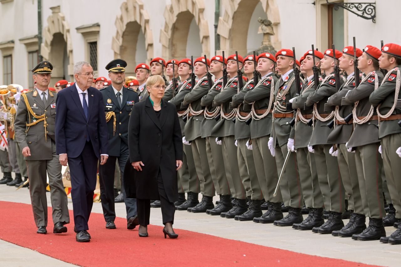 Zvezni predsednik Republike Avstrije je predsednico Republike Slovenije Natašo Pirc Musar sprejel z vojaškimi častmi v palači Hofburg.