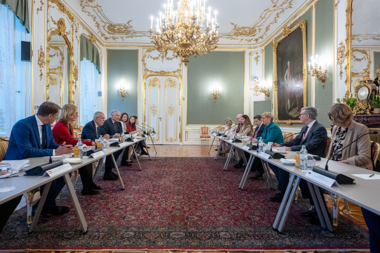 »Sosednje države so moja prioriteta,« je ob prihodu poudarila predsednica republike, ki se je z gostiteljem zadržala v pogovoru na štiri oči, zatem pa sta se delegaciji Republike Slovenije in Republike Avstrije sešli še na plenarnem pogovoru pod vodstvom obeh predsednikov.