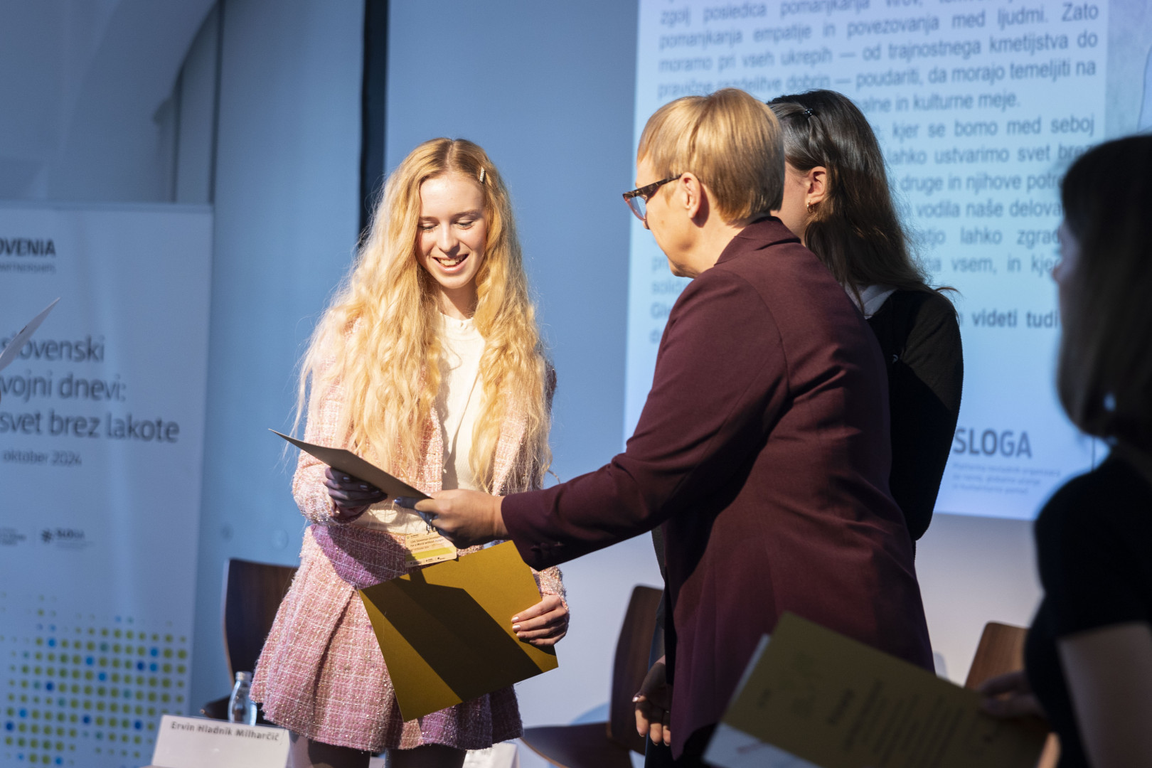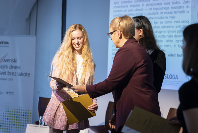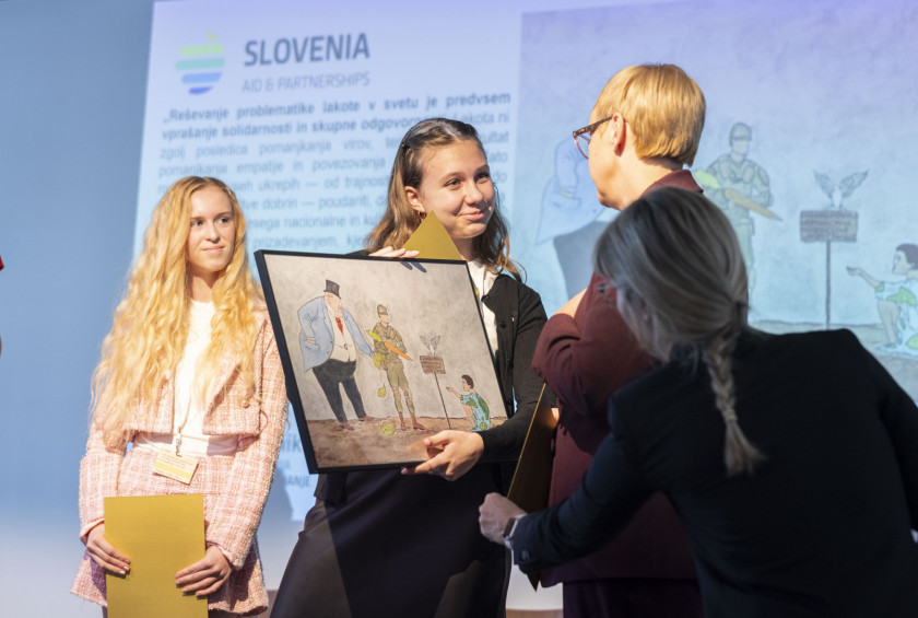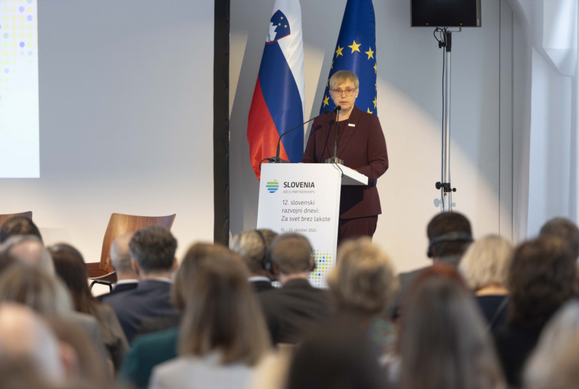 Slovenski razvojni dnevi sicer letos potekajo že 12. in v okviru dogodka je predsednica podelila priznanji učenkama, ki sta sodelovala pri nagradnem natečaju Za svet brez lakote. V uvodnem nagovoru je pojasnila, da se v zadnjem času veliko srečuje z otroki in z mladimi: »Ravno pred dobrim mesecem sem imela prijetno druženje z dijaki mariborske srednje šole. Z otroki se srečujem tudi izven Slovenije, med drugim na obisku v Ukrajini. Le da tam v okoliščinah, ki so bistveno drugačne od teh, v katerih živijo dijaki v Mariboru in drugod po Sloveniji. V predsedniško palačo so otroci lahko prišli, igrivi, dobre volje, polni veselja, se srečni fotografirali z mano. Marsikje to ni mogoče. Ker je prenevarno. Življenjsko nevarno. Na mojem junijskem delovnem obisku v Ukrajini so me spremljale povsem drugačne fotografije. Fotografije mrtvih, ugrabljenih in pohabljenih otrok. V Gazi Izrael ne izbira sredstev v svojem boju proti zločinskemu Hamasu. Že rojeni otroci so podhranjeni, grozljivo namerno ustvarjanje pomanjkanja je del vsakdana že za dojenčke.«