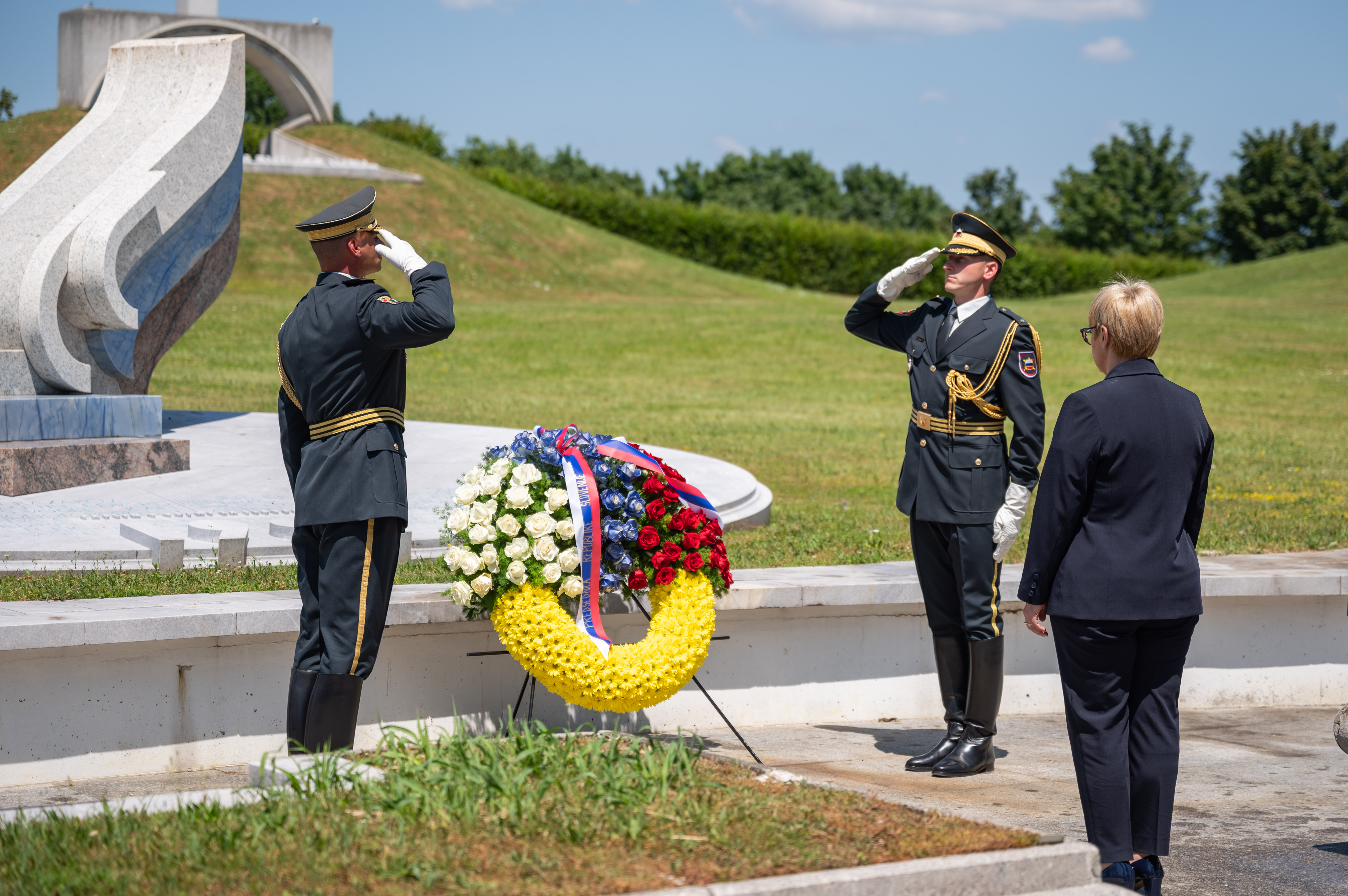 Predsednica republike pa je danes položila tudi venec k Pomniku padlim v vojni za Slovenijo na ljubljanskih Žalah.