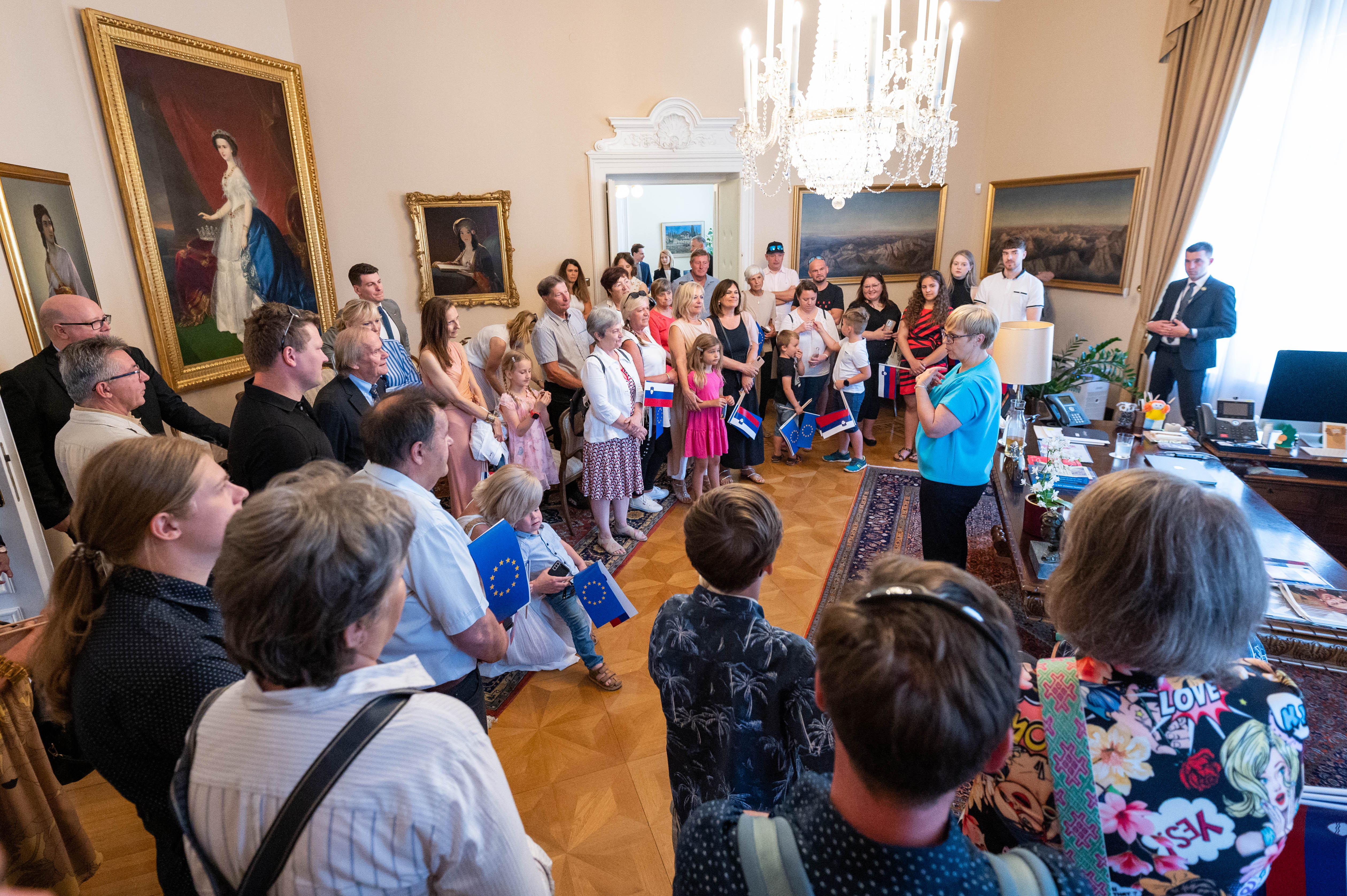 Vsak prebivalec naše domovine dodaja pomemben kamenček v mozaik delovanja države. Dan državnosti v Predsedniški palači je tako priložnost za neposreden vpogled v delovanje in delo Urada predsednice Republike. Obiskovalci so se srečali s predsednico Pirc Musar in z njo delili svoje misli, skrbi, mnenja in ideje za prihodnost naše države. V okviru dogodka pa je bil omogočen tudi ogled delovnih in protokolarnih prostorov pod strokovnim vodstvom uslužbencev Protokola Republike Slovenije.