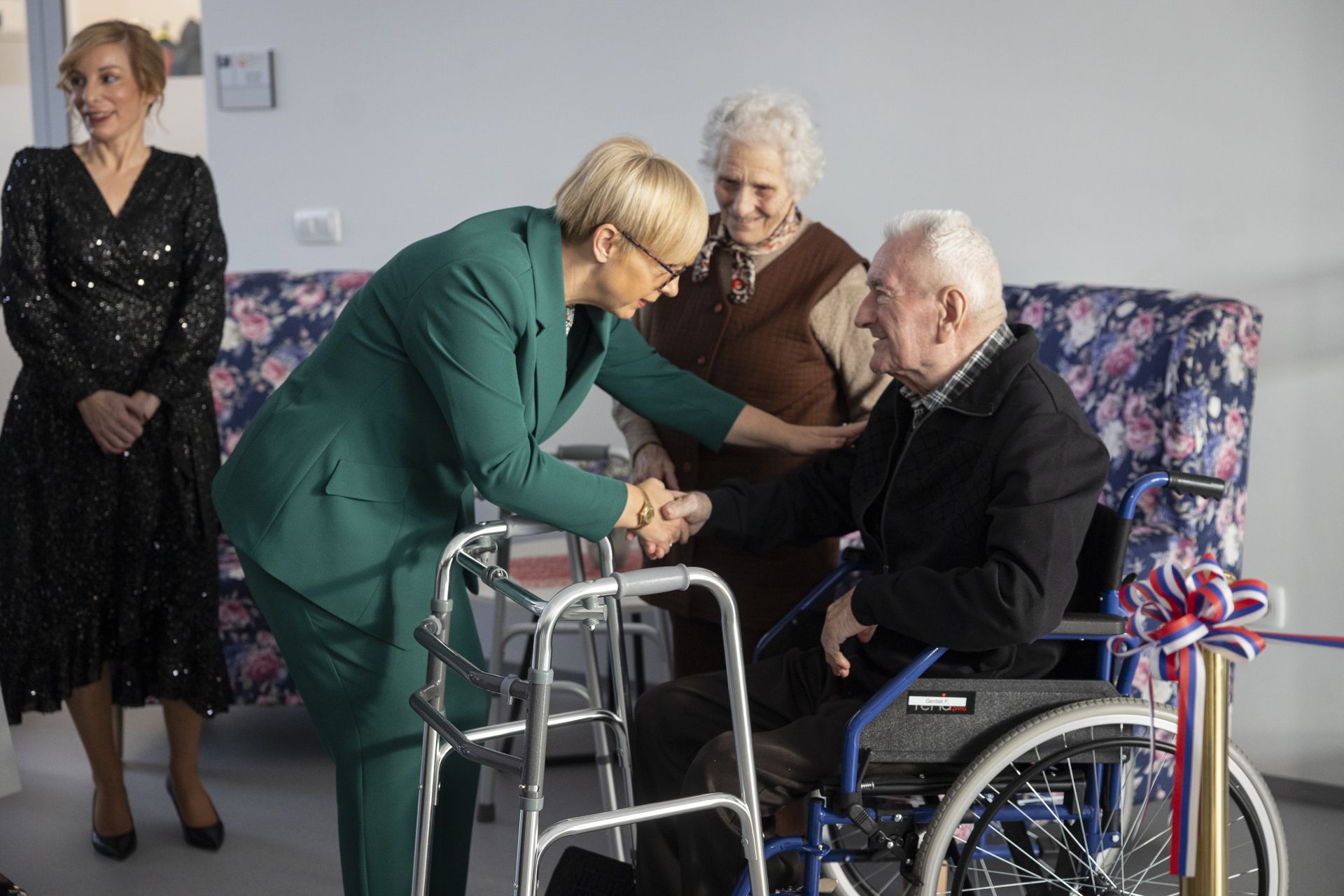 Zatem je odšla na Ptuj, kjer so odprli najnovejšo enoto tamkajšnjega doma upokojencev. Predsednica republike, ki je bila tudi častna pokroviteljica prireditve, se je skupaj z več kot 900 stanovalci in 569 zaposlenimi razveselila odprtja nove enote Žabjak, največje tovrstne investicije v Sloveniji. Poklonila se je zaposlenim, ki strokovno in z veliko spoštovanja, topline, sočutja in potrpljenja skrbijo za stanovalke in stanovalce. Ob tem je opozorila, da nas na področju institucionalne oskrbe starejših in drugih odraslih oseb s posebnimi potrebami, ki potrebujejo 24-urno socialno in zdravstveno oskrbo, še čaka delo – predvsem čakalne vrste in pomanjkanje kadra, zaradi česar je nezasedenih okoli 1000 postelj. Tudi danes odprta enota Žabjak zaradi pomanjkanja kadra ne bo takoj v celoti zaživela. »Zaskrbljujoče stanje na področju zagotavljanja dostopnosti in dosegljivosti storitev socialnega varstva se v Sloveniji v zadnjih letih stopnjuje,« je opozorila predsednica, ki ocenjuje, da manjkajo akcijski načrti in namenska sredstva v proračunu, saj je zadnji čas, da ministrstvo za zdravje sprejme že dolgo pripravljene in strokovno verificirane kadrovske standarde in normative, poskrbeti pa moramo tudi za ustreznejše plačilo zaposlenih v domovih. Izpostavila je tudi osamljenost, ki se uvršča med enega najpogostejših vzrokov smrti v civiliziranem zahodnem svetu. »Praznični december je pravi čas, da se odločimo, da bomo to tiho bolezen začeli preprečevati,« je navzoče spodbudila predsednica Pirc Musar, prepričana, da je to naša srčna dolžnost. Vedno je čas, da postanemo prostovoljci in skupaj premagamo osamljenost ter drug drugemu polepšamo življenje.