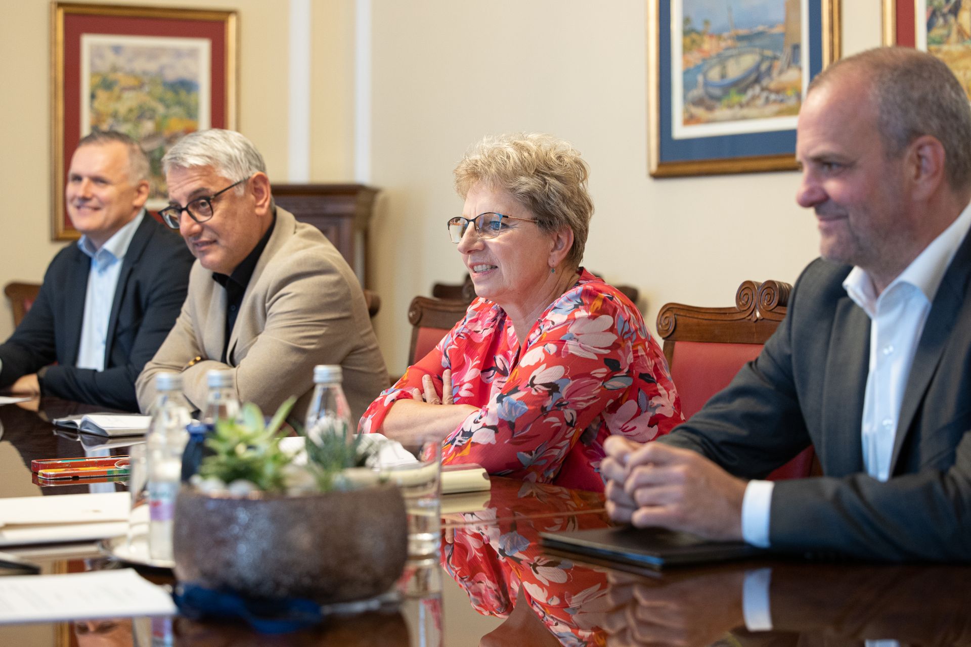 V sklopu vsebinskih priprav na forum se je predsednica Republike Slovenije danes na delovnem srečanju sestala z ministrico za kmetijstvo, gozdarstvo in prehrano Ireno Šinko, ministrom za naravne vire in prostor Urošem Brežanom, ministrom za gospodarstvo, turizem in šport Matjažem Hanom in ministrom za okolje, podnebje in energijo mag. Bojanom Kumrom.
