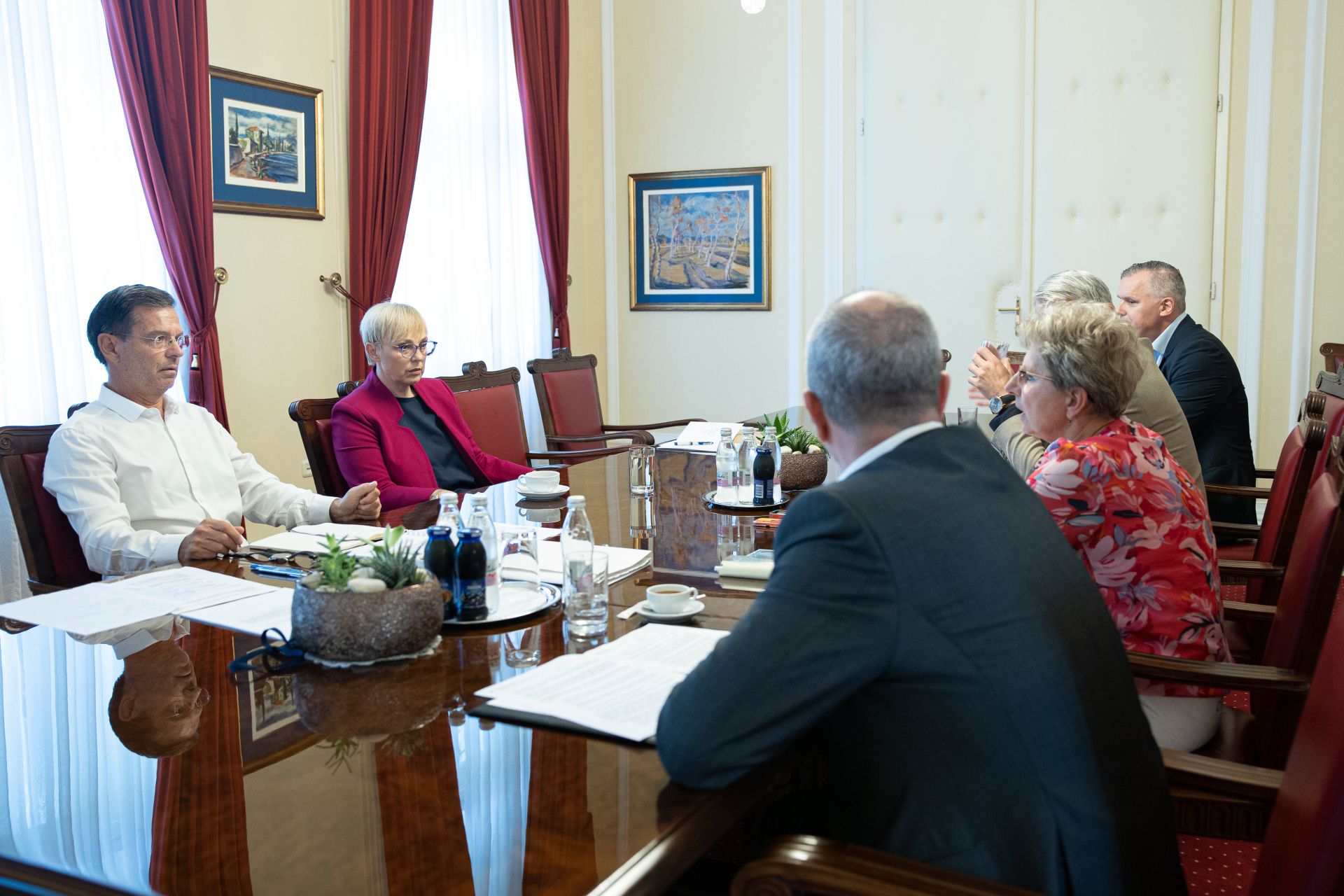 Predsednica Republike Slovenije Nataša Pirc Musar se je v sklopu priprav na Predsedničin forum »Trajnostne preobrazbe prehranskih sistemov in doseganja prehranske suverenosti« danes na delovnem srečanju sestala z ministrico Ireno Šinko in ministri Urošem Brežanom, Matjažem Hanom in mag. Bojanom Kumrom.