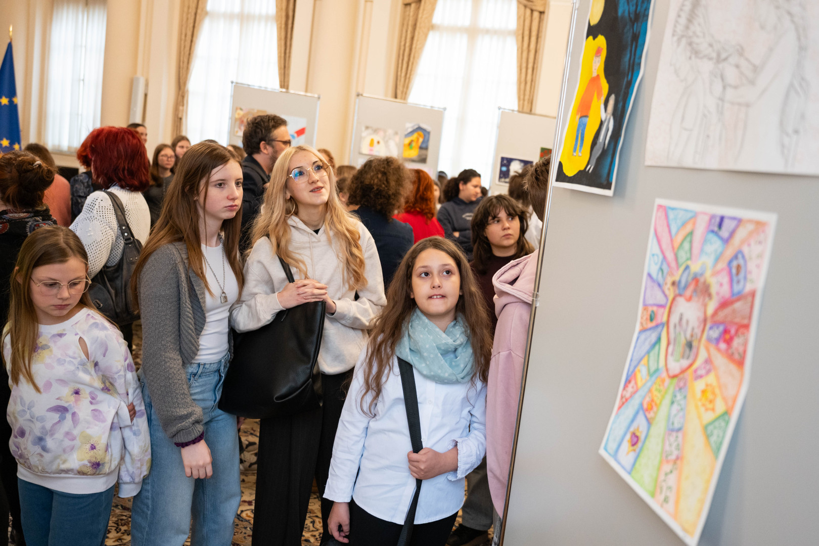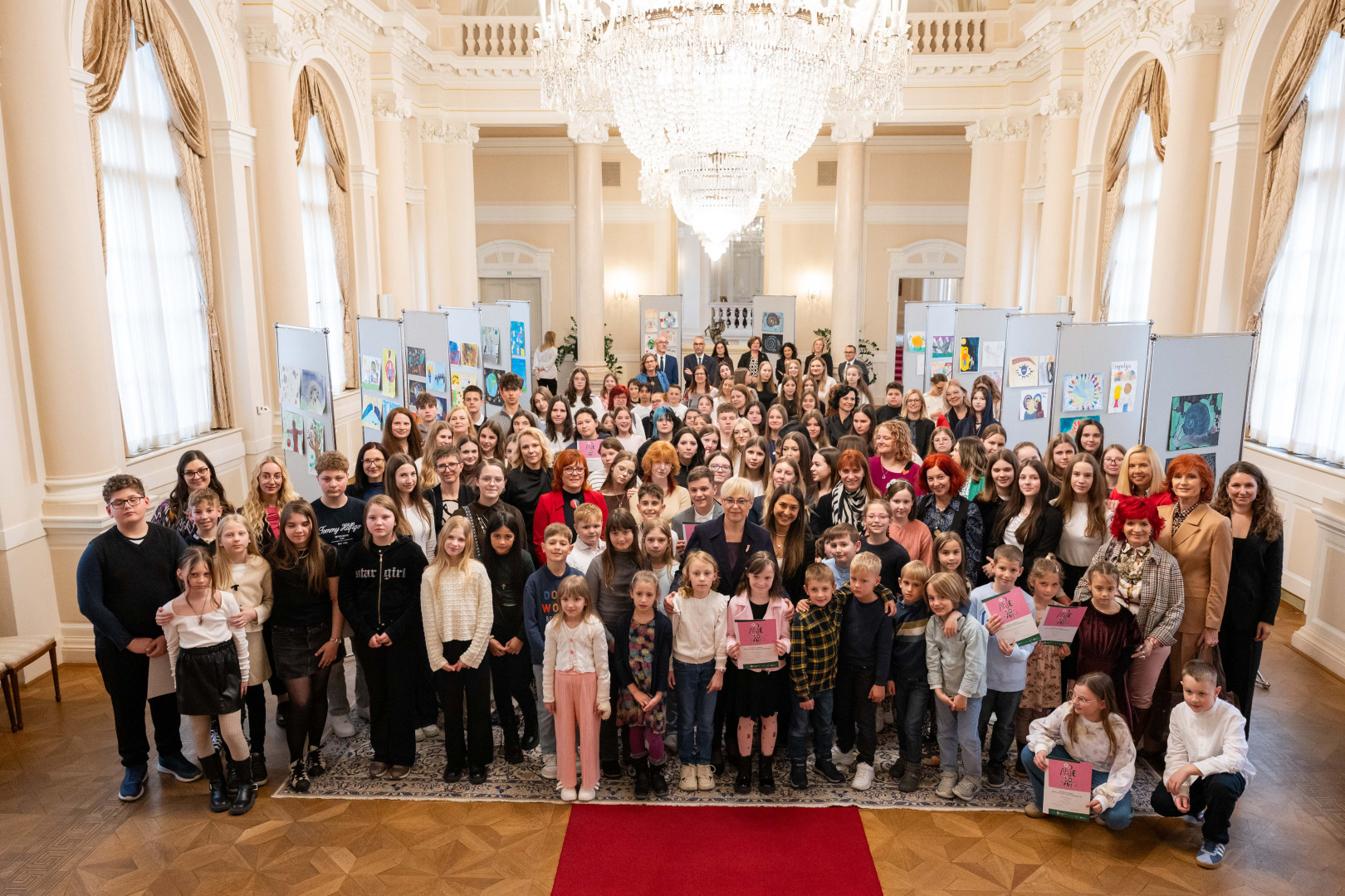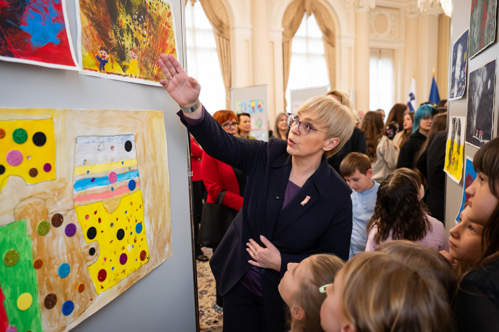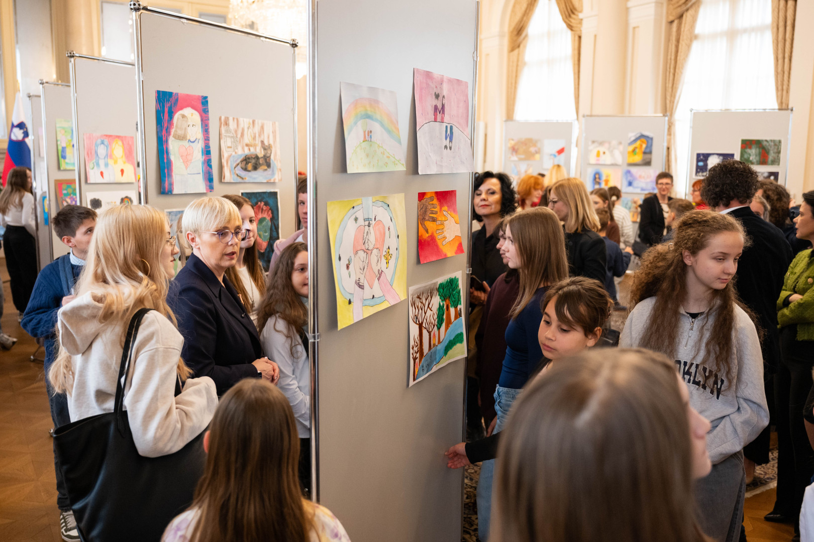 Predsednica Republike Slovenije Nataša Pirc Musar je v Predsedniški palači gostila 100 otrok iz desetih osnovnih šol z različnih koncev Slovenije, ki so v okviru projekta od Alje do Žana – Čuječa srca, budni umi skozi likovno ustvarjanje raziskovali temeljne človeške vrednote.