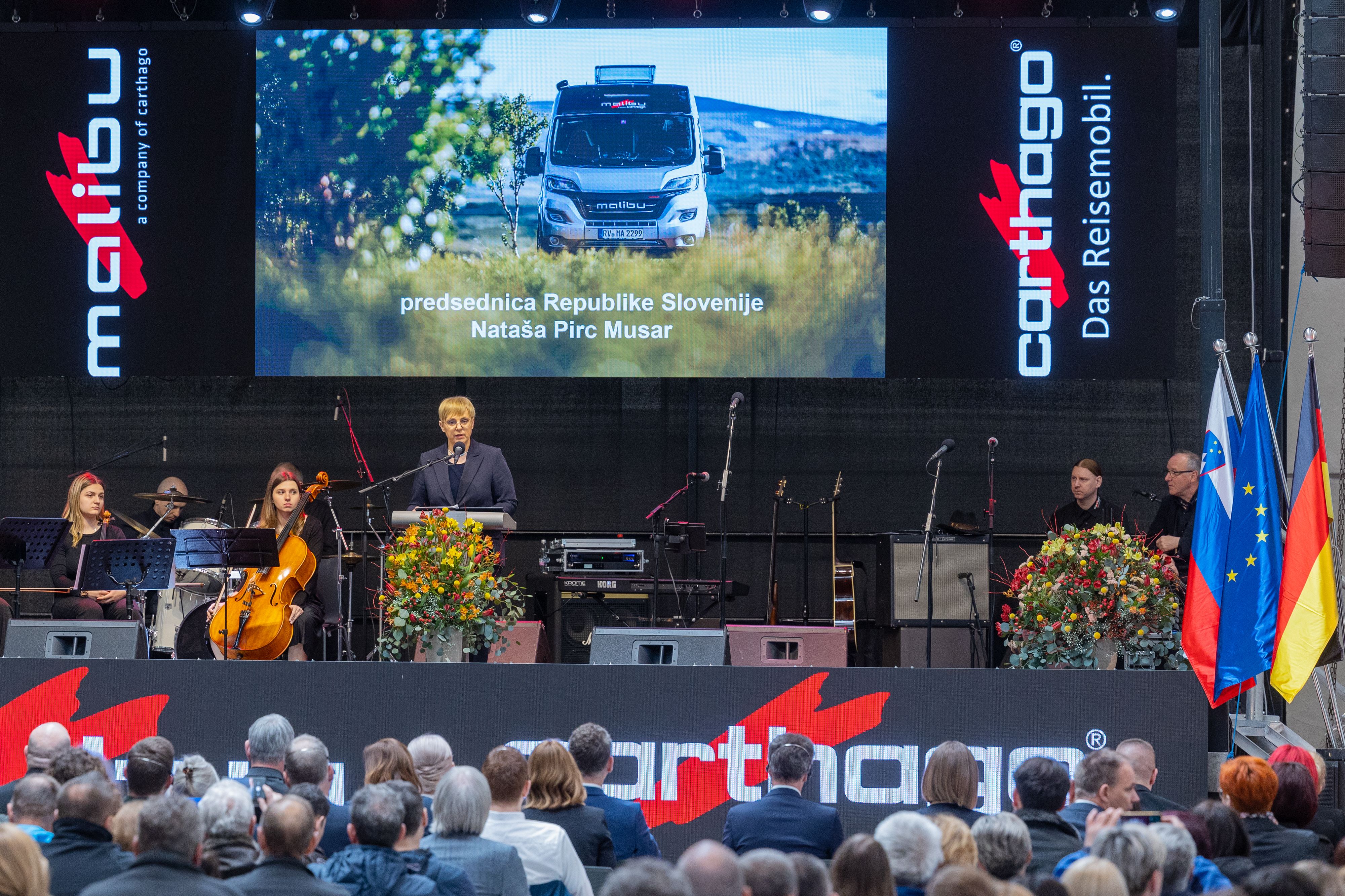 Predsednica Republike Slovenije Nataša Pirc Musar se je danes udeležila slavnostnega odprtja novega obrata nemškega podjetja Carthago v Ormožu, kjer je imela tudi govor.