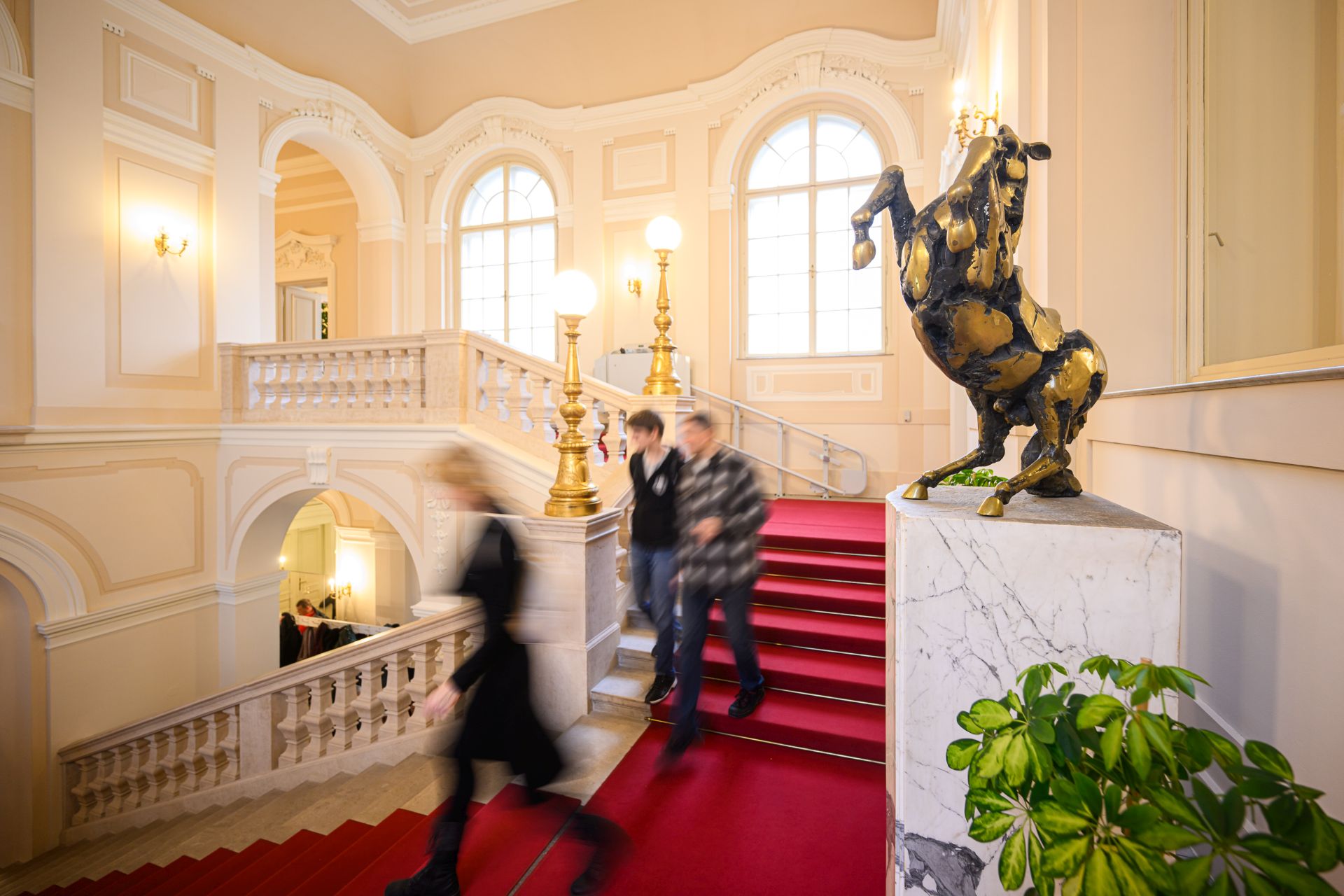 Precej pozornosti obiskovalcev pritegnil bronasti kip vzpenjajočega se Lipicanca slovenskega kiparja Janeza Boljka. Ta je že kar nekaj let krasi osrednje stopnišče Predsedniške palače.