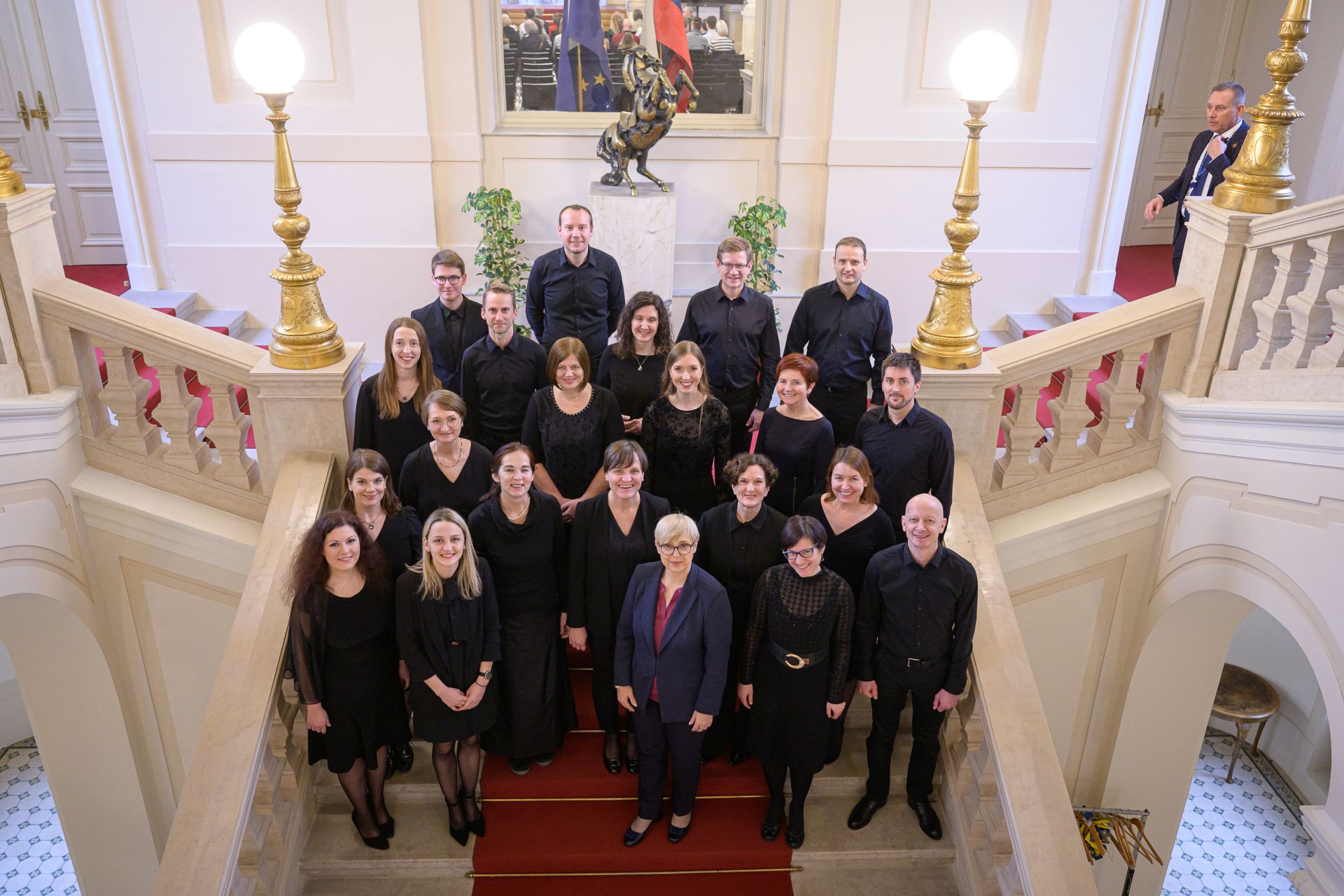 Po dobrodošlici, s katero je današnje goste nagovoril generalni sekretar mag. Uroš Krek, in krajšem kulturnem programu v izvedbi pevskega zbora Banke Slovenije in kvinteta Policijskega orkestra, so gostje obiskali predsednico republike v njeni pisarni, ki jim je razkazala slike in predmete, ki jo krasijo. V zvezi z današnjim praznikom pa je izpostavila velik pomen enotnosti in solidarnosti, ki sta obe zelo pomembni za našo državo. Povedala je, da si želi, da smo bolj enotni pri zadevah, ki so pomembne za enotnost in razvoj naše države, za lepše življenje. »Če bomo solidarni in enotni, kot znamo biti, bo še bolje, kot že sicer je,« je zaključila in obiskovalcem čestitala ob današnjem prazniku.
