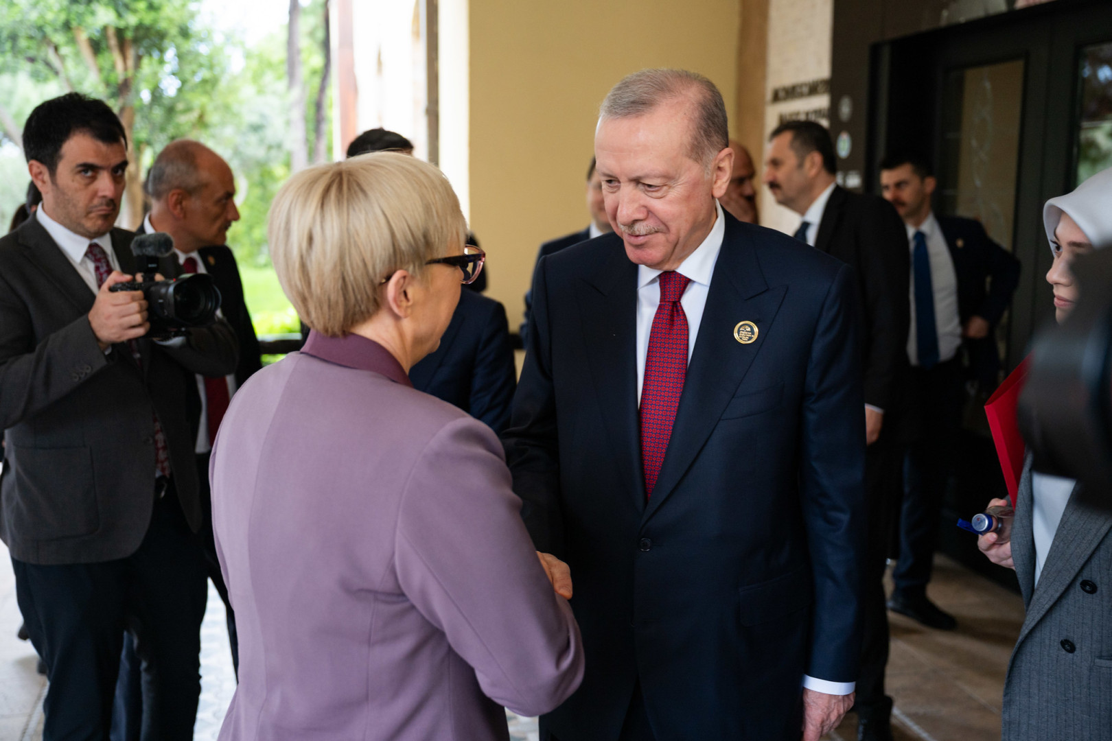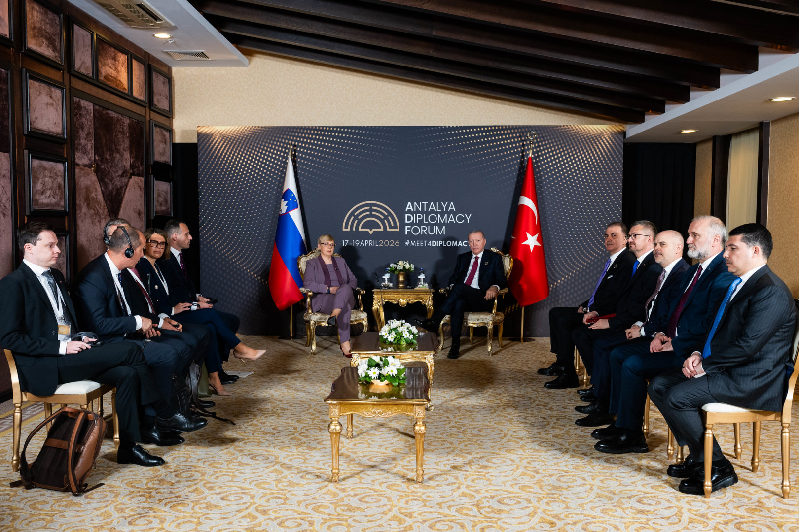 Ob robu udeležbe na letošnjem diplomatskem forumu v Antalyi se je predsednica Republike Slovenije Nataša Pirc Musar na dvostranskem srečanju sestala s predsednikom Republike Turčije Recepom Tayyipom Erdoğanom.