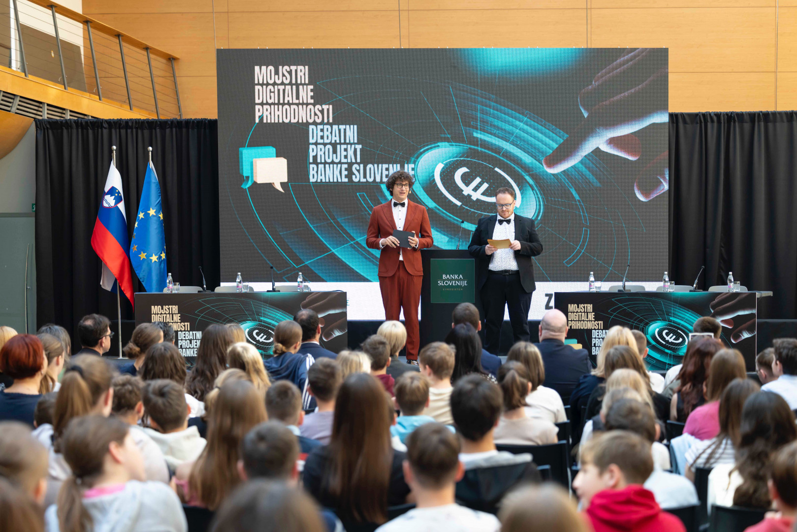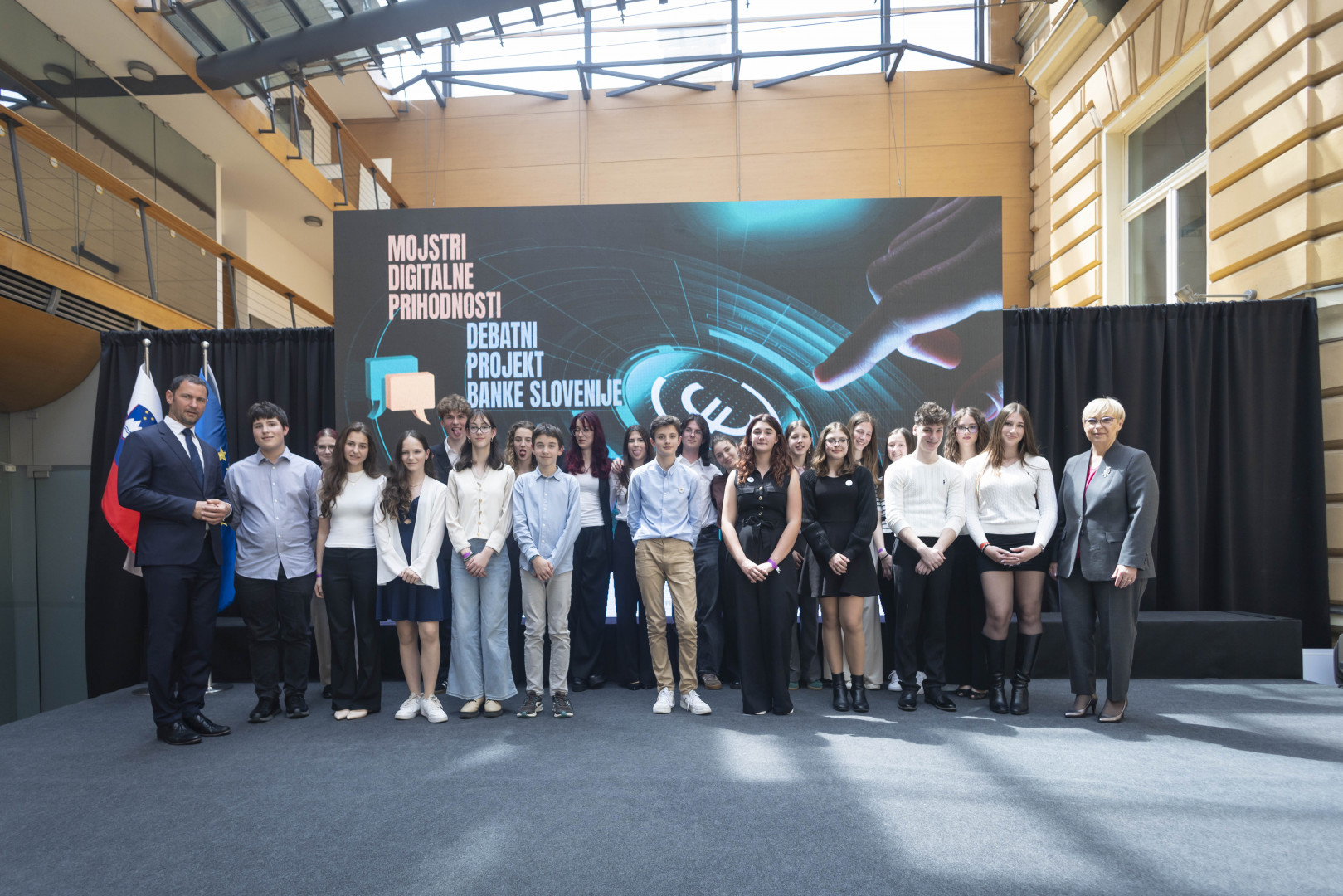 Predsednica Republike Slovenije Nataša Pirc Musar se je udeležila zaključnega dogodka debatnega projekta Mojstri digitalne prihodnosti, namenjenega osnovnošolcem zadnje triade in dijakom, ki ga organizira Banka Slovenije. Predsednica, ki je častna pokroviteljica projekta, je v nagovoru izpostavila pomen kritičnega razmišljanja, finančne pismenosti in spletne varnosti v času hitrega digitalnega razvoja.