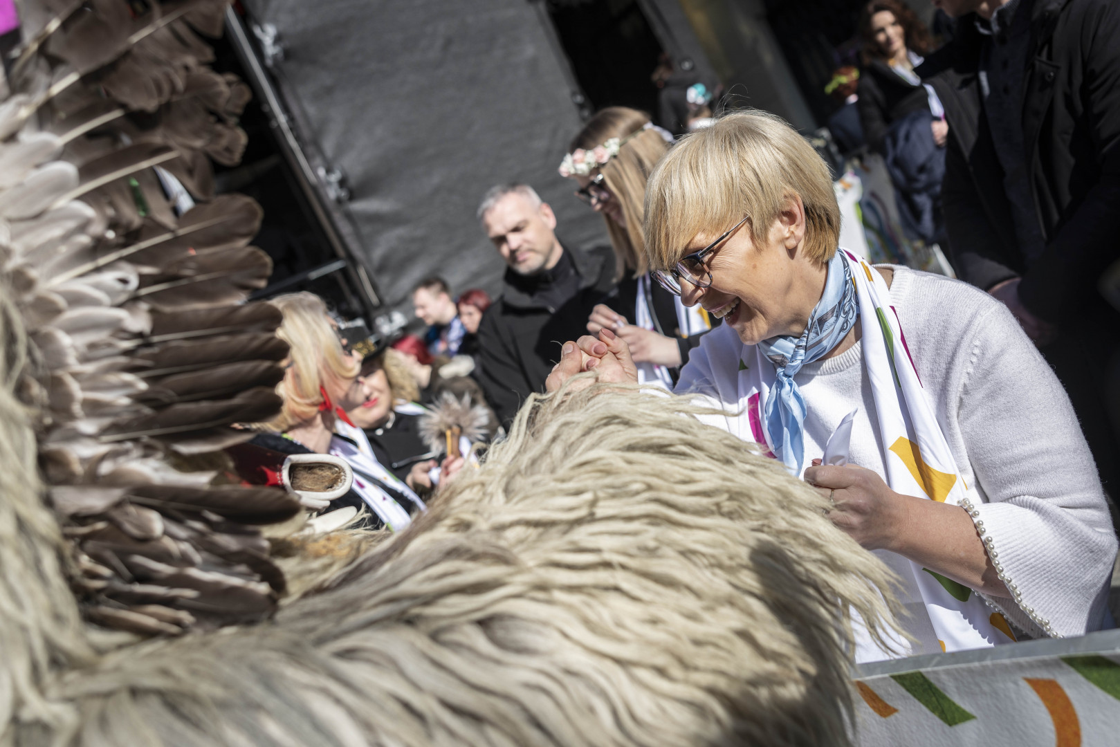 Predsednica Republike Slovenije Nataša Pirc Musar se je na Ptuju udeležila 65. mednarodne karnevalske povorke 2025.