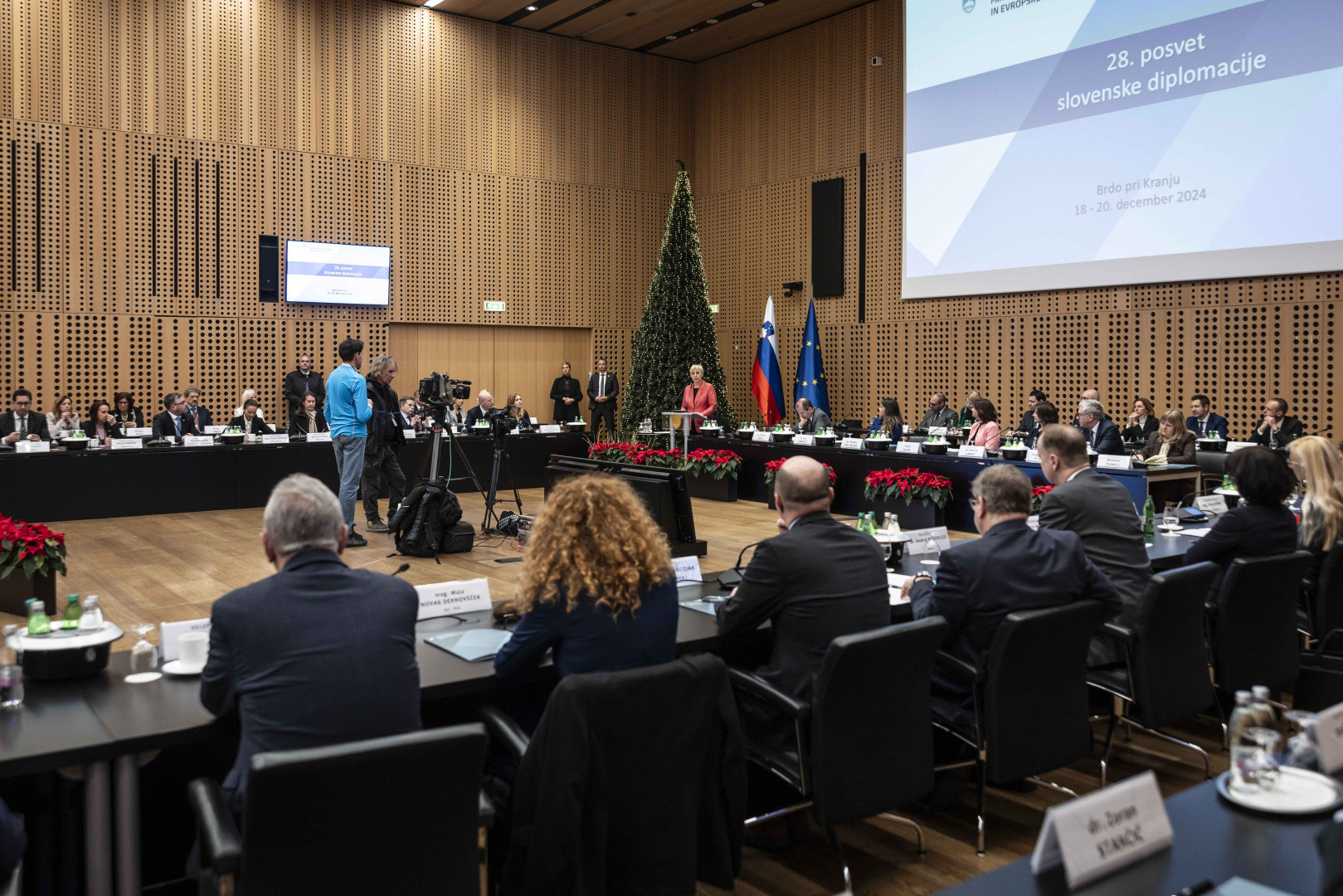 Predsednica Republike Slovenije Nataša Pirc Musar je v okviru letnega posveta diplomacije na Brdu pri Kranju nagovorila vodje slovenskih diplomatskih predstavništev in konzulatov. Kot je uvodoma povedala, je naša diplomacija majhna, zato je še toliko pomembneje, da Slovenija sistematično gradi profesionalno diplomacijo, utemeljeno na meritokraciji, ki je ne ovirajo delitve ali partikularni interesi.
