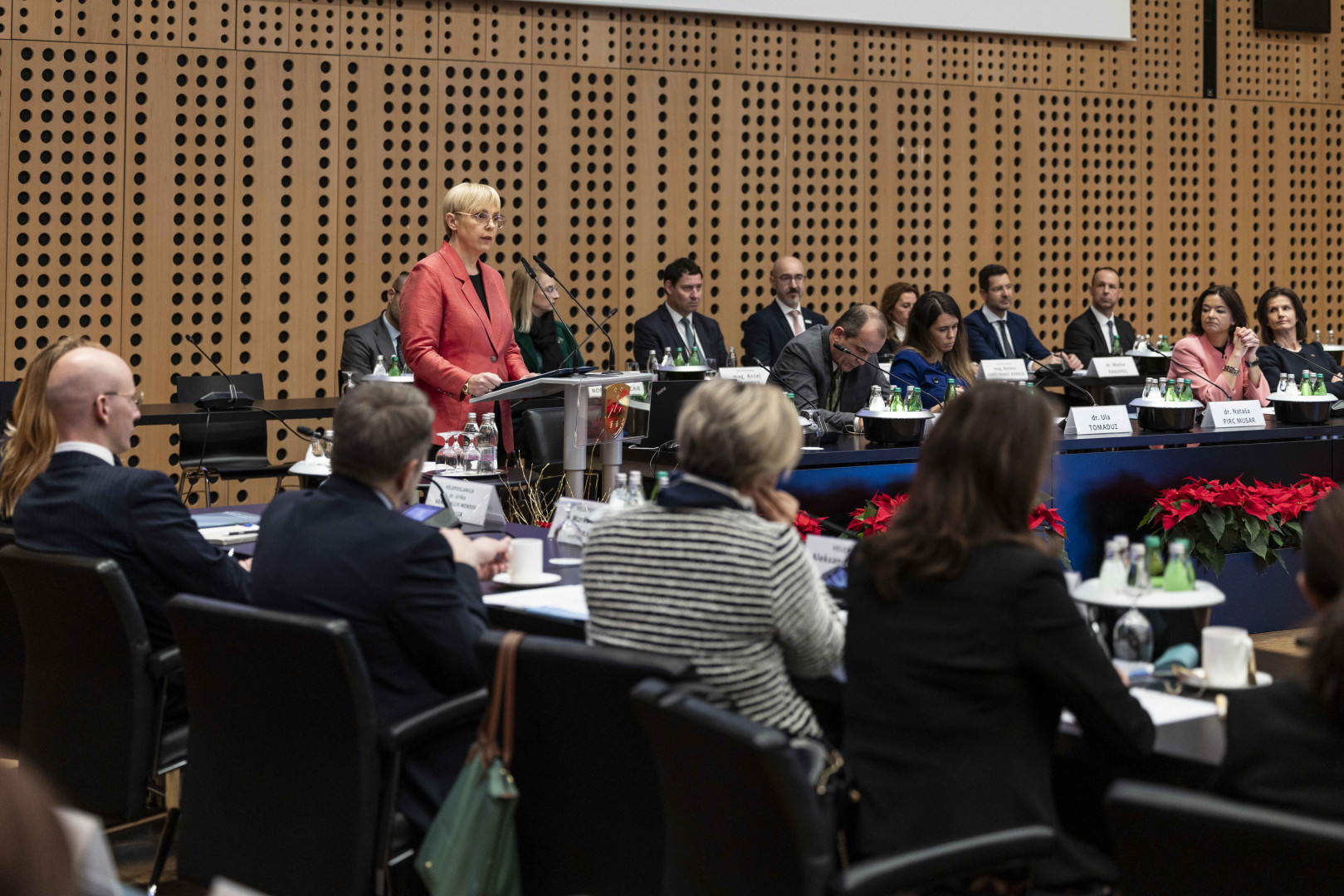 V letu 2025 bomo soočeni s številnimi izzivi, zato je predsednica izpostavila velik pomen odločnega odzivanja nanje, morda še bolj odločnega, kot kdajkoli prej. »Mir in varnost, utemeljena na sodelovanju, solidarnosti, trajnostnem razvoju in zaščiti človekovega dostojanstva, sta vizija in pot do našega napredka,« je poudarila.