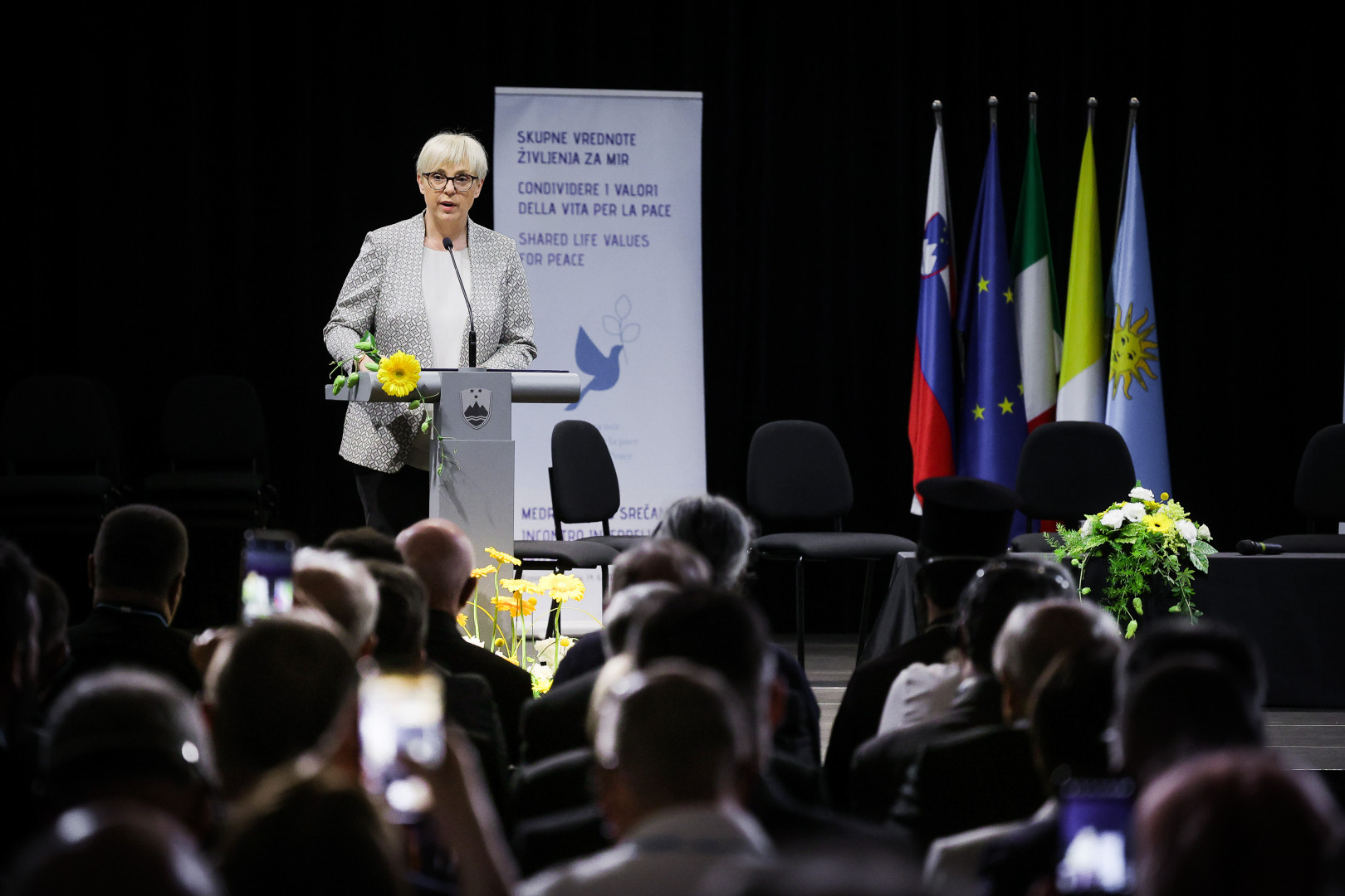 Predsednica je poudarila, da mir ni samoumeven, temveč skupna odgovornost. Foto: Daniel Novakovič/STA