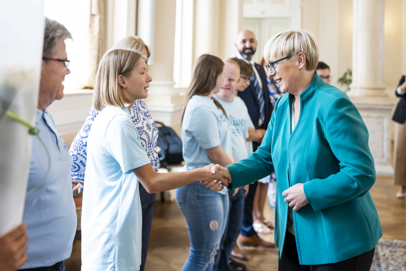 Predsednica Republike Slovenije Nataša Pirc Musar je v Predsedniški palači sprejela mladostnike, udeležence projekta "Mirno morje".