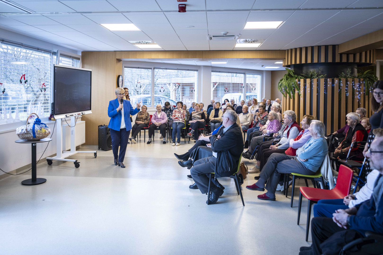 Ob tej priložnosti jim je zaželela vse dobro v letu 2025 in podarila nekaj domačih dobrot. Stanovalci in zaposleni so ji pripravili prisrčen glasbeni program.