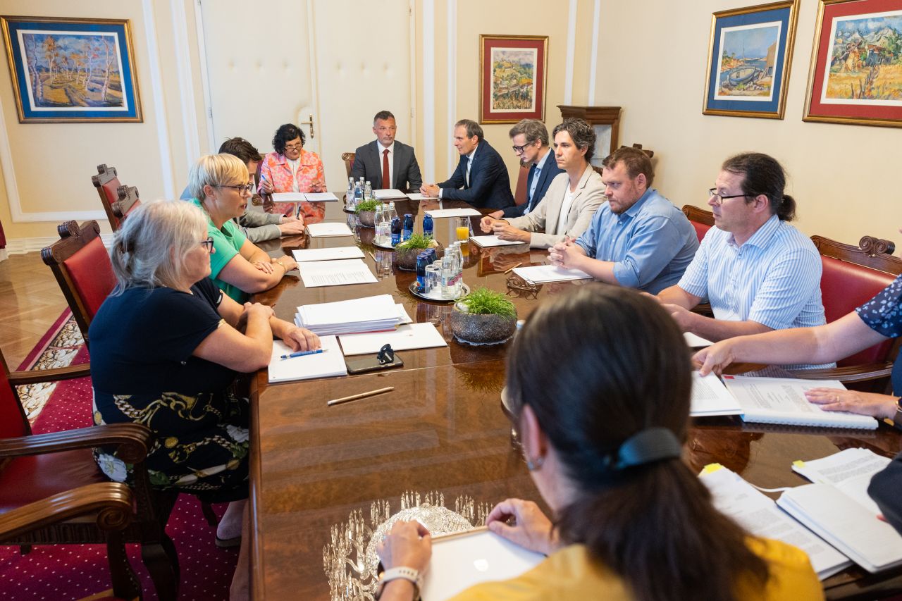 Današnjega sestanka so udeležili: ministra Simon Maljevac in Luka Mesec, državna sekretarja Luka Omladič in Igor Feketija, direktorica Inštituta RS za socialno varstvo Barbara Kobal Tomc, generalni direktor NIJZ Branko Gabrovec, predsednica Zbornice zdravstvene in babiške nega Slovenije Monika Ažman, predsednica Skupnosti socialnih zavodov Slovenije Valerija Lekič Poljšak ter generalni direktor ZPIZ Marijan Papež.