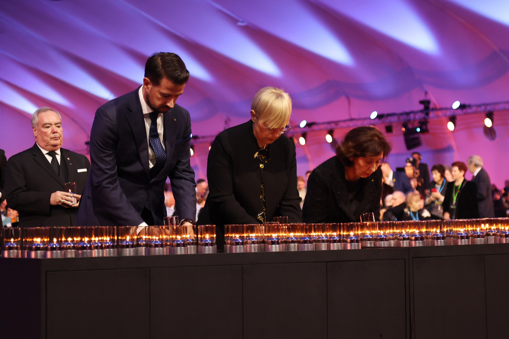 Ob koncu dogodka je predsednica republike skupaj z ostalimi predsedniki držav in vlad ter preživelimi taboriščniki na vagon spominskega vlaka položila prižgano svečko. V spomni na vse, za katere je bila pot s takšnimi vagoni zadnja v njihovem življenju. »Naj bo ta obletnica v spomin in opomin vsem nam, predvsem pa politikom in mnenjskim voditeljem, kakšno srečo smo imeli, da se nismo znašli na oni strani ograje. Naj bo ta obletnica tudi priložnost za samoizpraševanje. Pieteto do vseh žrtev druge svetovne vojne in po njej bomo najbolje počastili s tem, da smo v svoji zavezi 'Nikoli več' trdni dosledni tudi in predvsem skozi spoštovanje mednarodnega prava in skrbi za zaščito človekovega dostojanstva,« je še dejala predsednica.