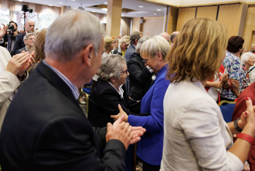 Predsednica republike se prisotnim, ki so preživeli grozote druge svetovne vojne, zato poklonila z verzom Erne Muser, rekoč da »ne zlomiš src, ki hočejo živeti,« in da kulturo spominjanja ohranjajo »kot trsje, ki se v viharju stisne in skloni k tlom, pa spet ponosno vstane.« Dejala jim je, da so zgled in opomin družbi, saj nam dokazujejo, kako pomembni so strpnost, razumevanje in dialog, odpuščanje in iskanje novih vezi med ljudmi. »Sobivanje narodov ter spoštovanje mednarodnega prava, človekovih pravic in svoboščin morajo biti trajni temelji naše skupne prihodnosti. Brez tega naš svet enostavno ne more obstati,« je bila jasna.