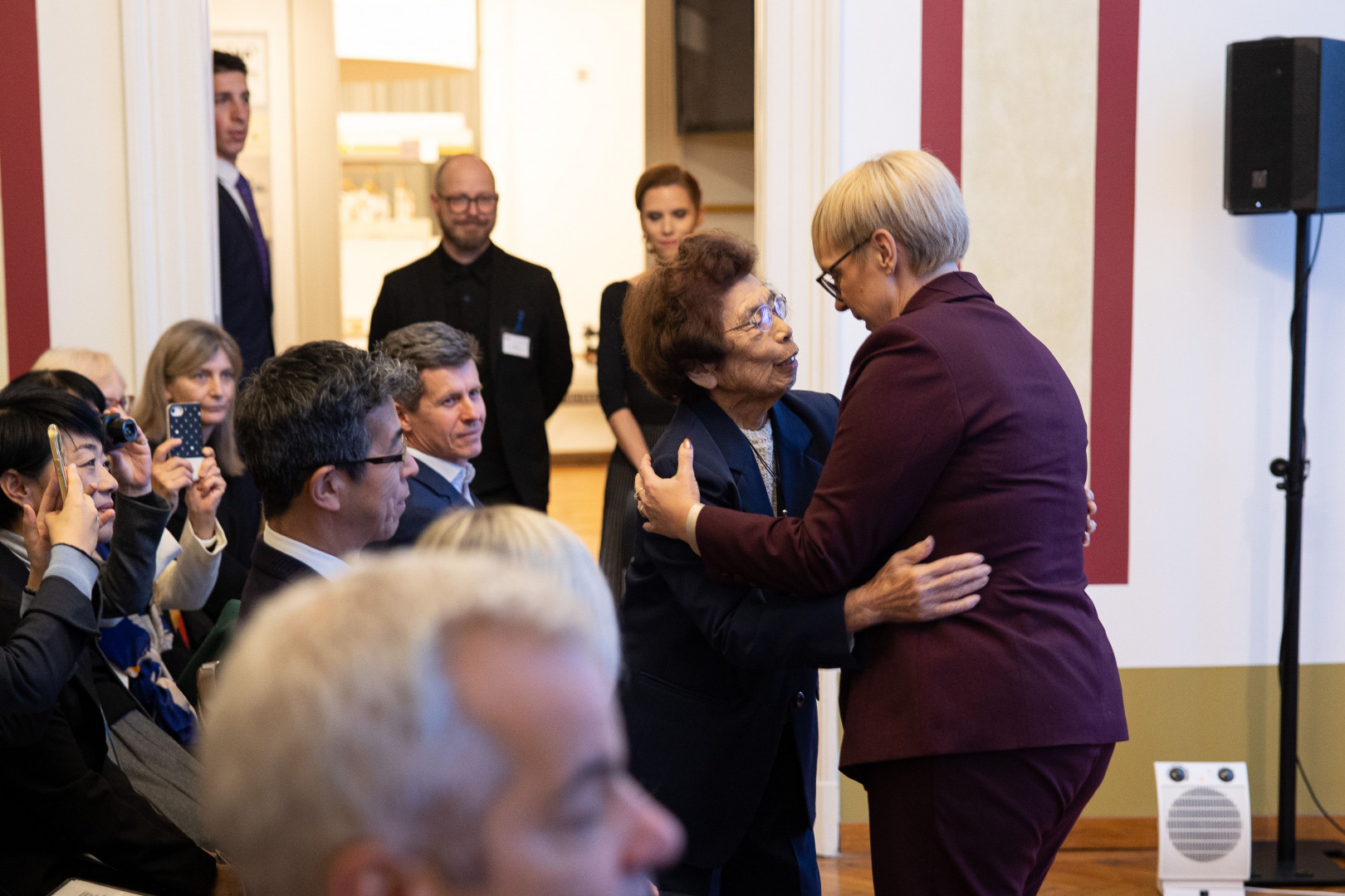 Posebno ganljiv trenutek odprtja razstave je bila prisotnost gospe Sadae Kasaoka, preživele jedrske bombe v Hirošimi, ki je z zbranimi delila svojo presunljivo in hkrati navdihujočo osebno zgodbo. Predsednica se ji je zahvalila za njen pogum in prizadevanja za ozaveščanje o grozotah jedrskega orožja ter dejala, da so njene besede pomemben opomin in klic k odgovornosti, da jedrsko orožje nikoli več ne sme biti uporabljeno. "Tu smo zato, da s pomočjo razstave in zgodb preživelih ozavestimo pomen miru in prispevamo svoj kamenček v mozaik volje in odgovornosti, da človek res nikoli več ne bi izkusil grozot jedrske bombe ali A-bombe," je poudarila predsednica.