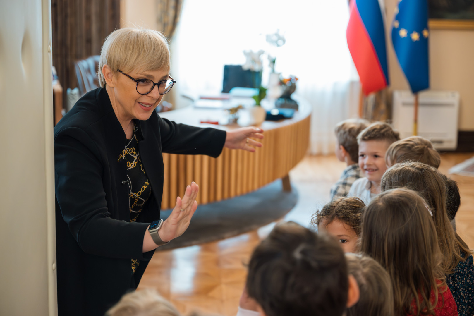 Predsedniško palačo so obiskali otroci iz Vrtca Mladi rod. Otroke je v predsedniški pisarni sprejela predsednica Republike Slovenije Nataša Pirc Musar, ki jim je predstavila svoje delo, svoj vsakdan ter na razumljiv način pojasnila nekatere naloge in pristojnosti predsednice republike.