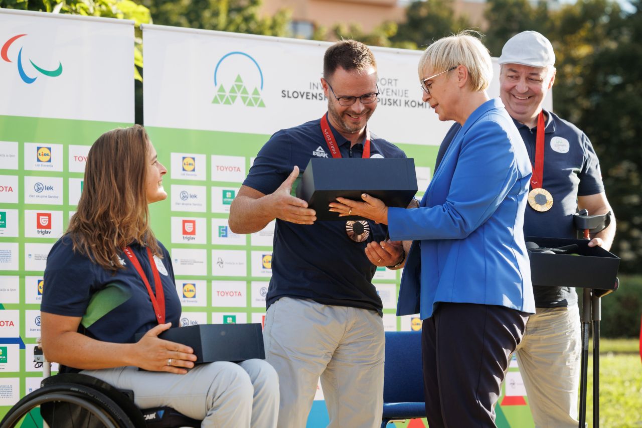 Predsednica države je posebej čestitala dobitnikom paralimpijskih medalj, ki so s svojimi dosežki postavili Slovenijo na paralimpijski tron. "Dragi Živa, Franček in Dejan, vaša priborjena odličja predstavljajo vrhunec letošnjih iger za Slovenijo in dokaz, kako zbranost, predanost in vztrajnost vodijo do najvišjih ciljev," je poudarila. Ob koncu govora je vse paralimpijce spodbudila, da nadaljujejo z izjemnim delom ter jim zaželela veliko zdravja in uspehov v prihodnosti. "Hvala vam za vse trenutke navdiha, ki ste nam jih podarili," je zaključila.