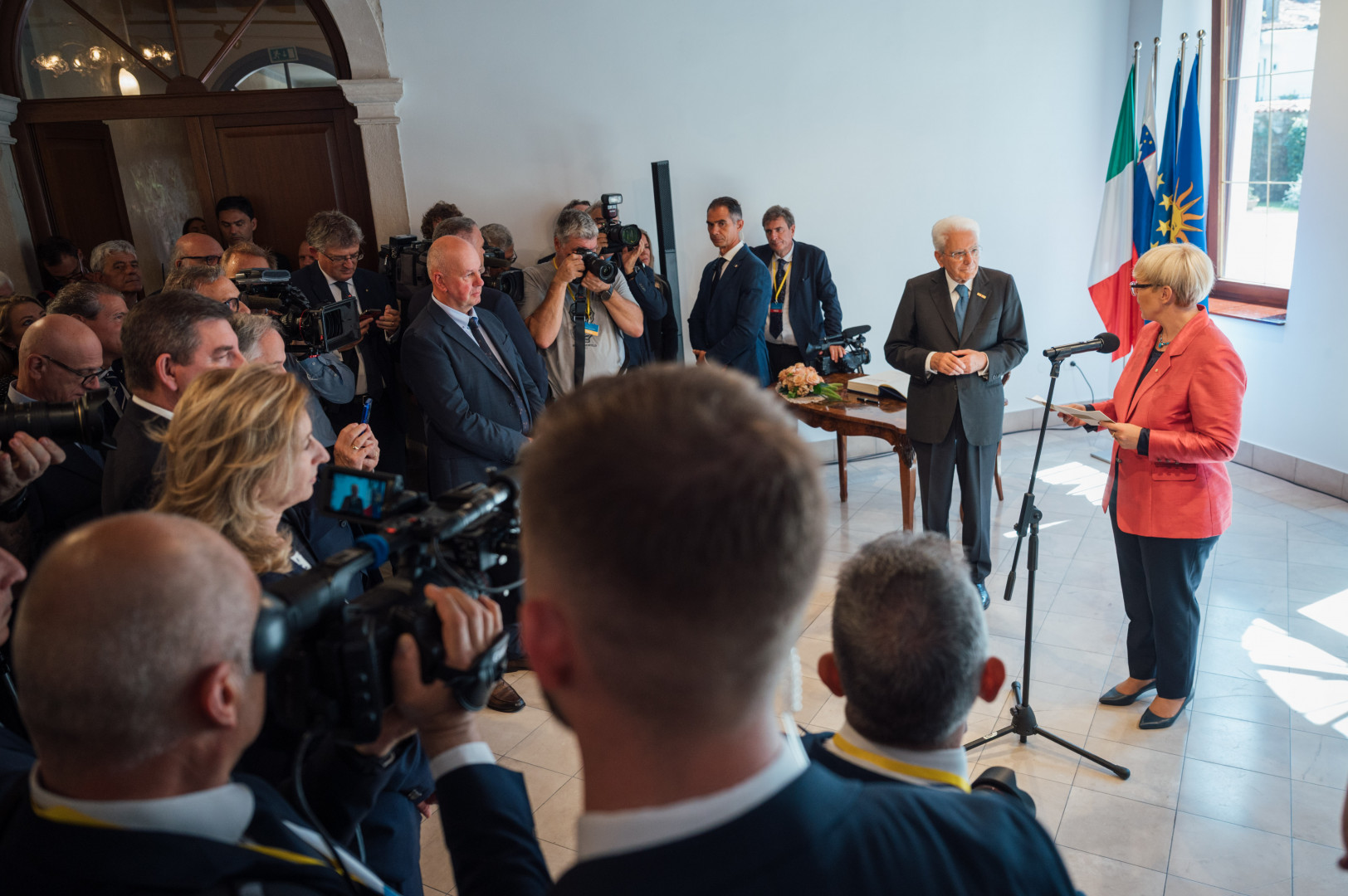 Predsednica je ob tej priložnosti izrazila hvaležnost predsedniku Mattarelli za njegovo razumevanje pomena manjšin kot mostu med državama. Posebej ga je nagovorila v zvezi z vlogo slovenskih manjšinskih šol v Italiji ter poudarila pričakovanje, da bo italijanska država spoštovala mednarodne sporazume in tem šolam zagotovila nemoteno nadaljevanje kakovostnega dela na celotnem območju Furlanije – Julijske krajine, kjer že stoletja živi in deluje avtohtona slovenska narodna skupnost. Ob tem je dodala, da Slovenija enako skrb namenja italijanski skupnosti pri nas – tudi na tej šoli v Kopru, ki sta jo danes skupaj odprla.