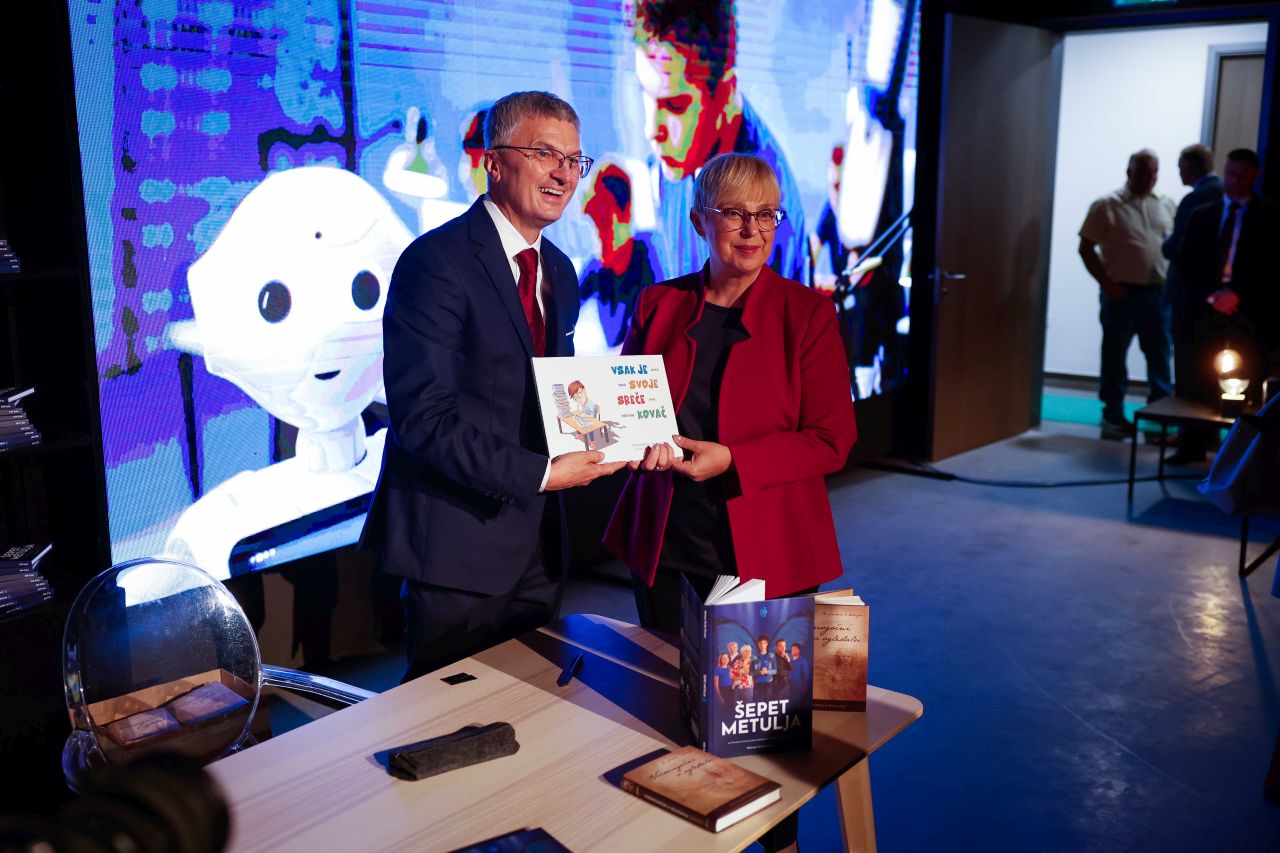 Franci Pliberšek je predsednici podaril tudi MIKovo knjigo "Vsak je svoje sreče kovač."