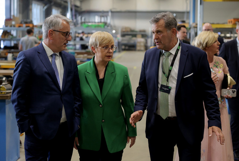 Predsednica republike si je v družbi ministra Matjaža Hana in lastnika Janka Koprivca ogledala tudi proizvodni proces.