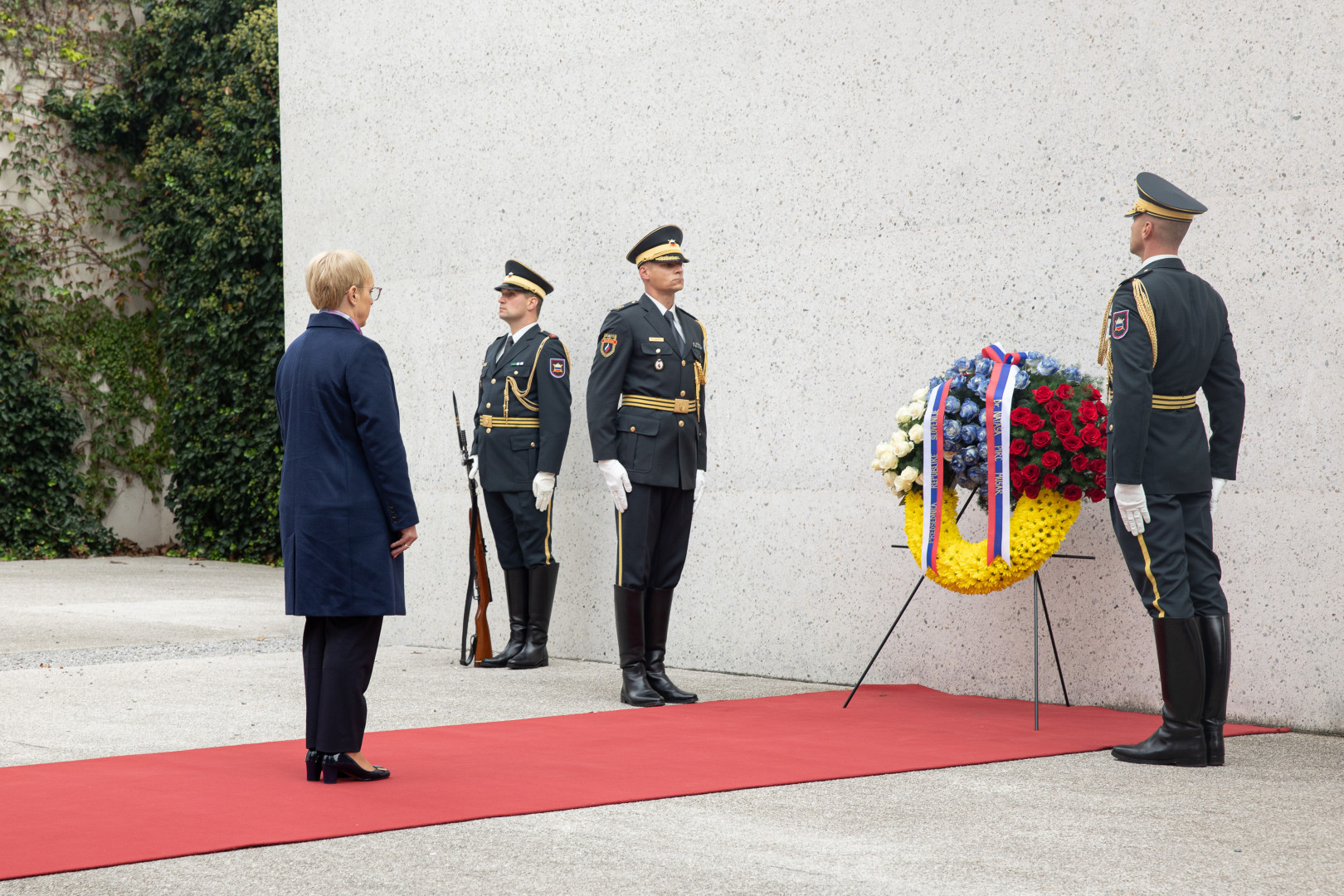 Predsednica Republike Slovenije Nataša Pirc Musar je v počastitev dneva spomina na mrtve ob navzočnosti Častne enote Republike Slovenije in spremstvu državne delegacije položila venec k Spomeniku vsem žrtvam vojn in z vojnami povezanim žrtvam na Kongresnem trgu.