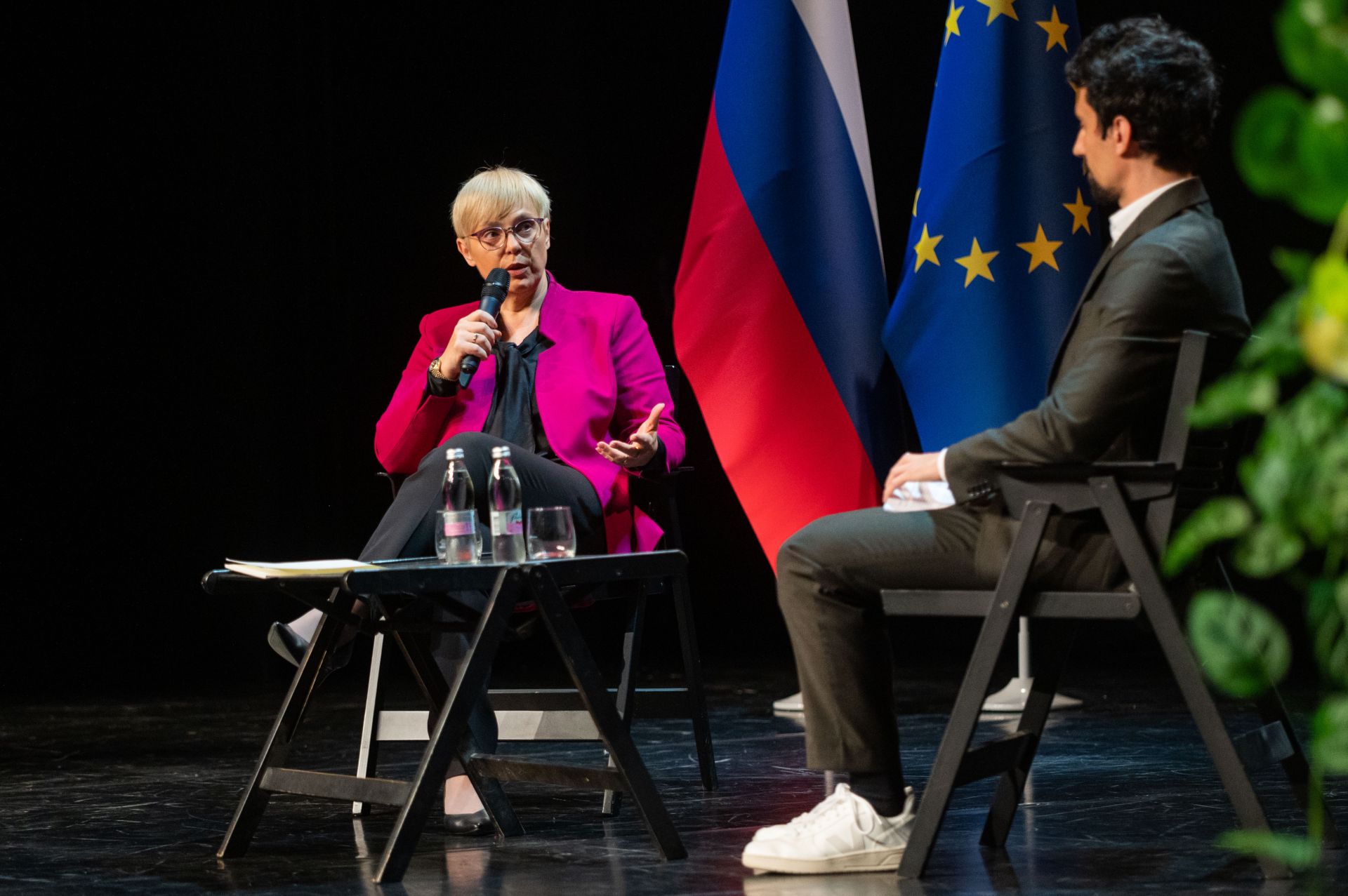 V pogovoru z Nejcem Horvatom iz inštituta Danes je nov dan je predsednica republike spregovorila o pomenu digitalne suverenosti, vlogi umetne inteligence in njeni regulaciji. Udeležencem konference je predstavila svoje poglede o temi in predstavila tudi nekaj izkušenj, ki jih je doživela v obdobju, ko je bila informacijska pooblaščenka.