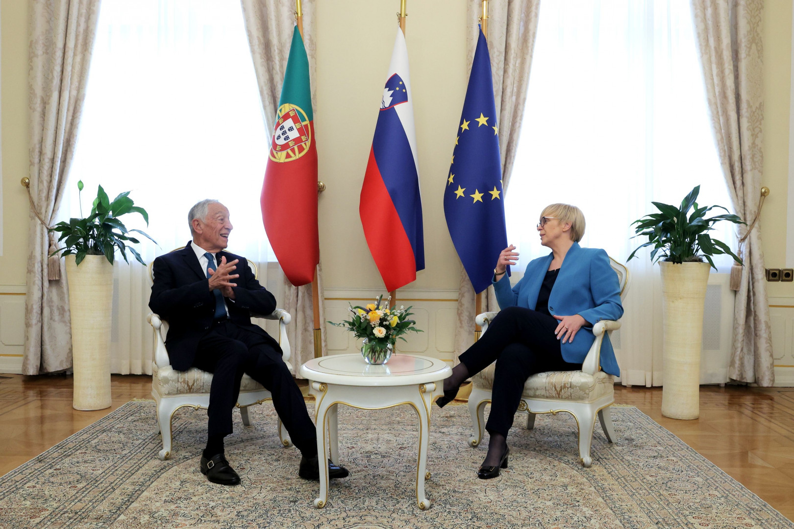 Predsednika sta se v pogovorih posvetila dvostranskim odnosom med Slovenijo in Portugalsko na političnem, gospodarskem, akademskem in drugih področjih ter sodelovanju na evropski in mednarodni ravni.